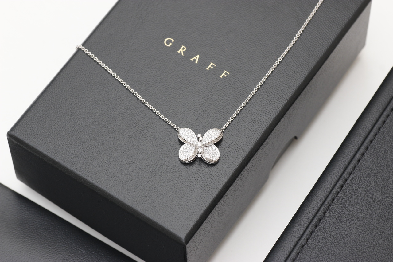 КУЛОН GRAFF BUTTERFLY RGP 600 / БЕЛОЕ ЗОЛОТО 750 / БРИЛЛИАНТЫ БАГЕТ / КРУГЛОЙ ОГРАНКИ