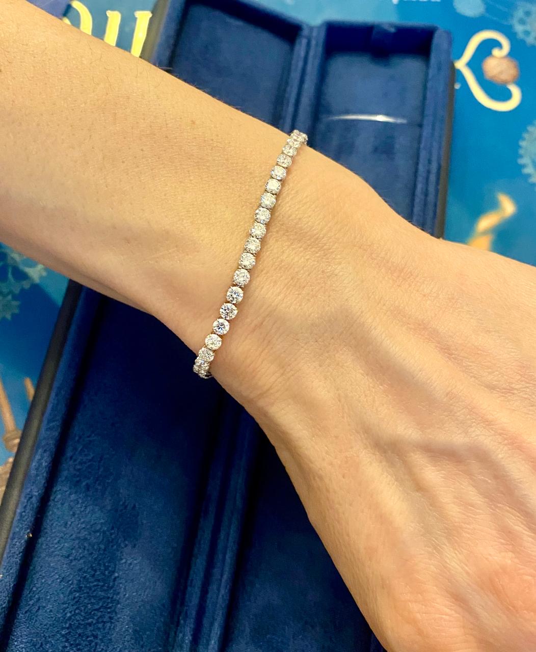 В продаже браслет с бриллиантами "Теннисный", белое золото 750 пробы, общий вес бриллиантов - 5,33 карата.