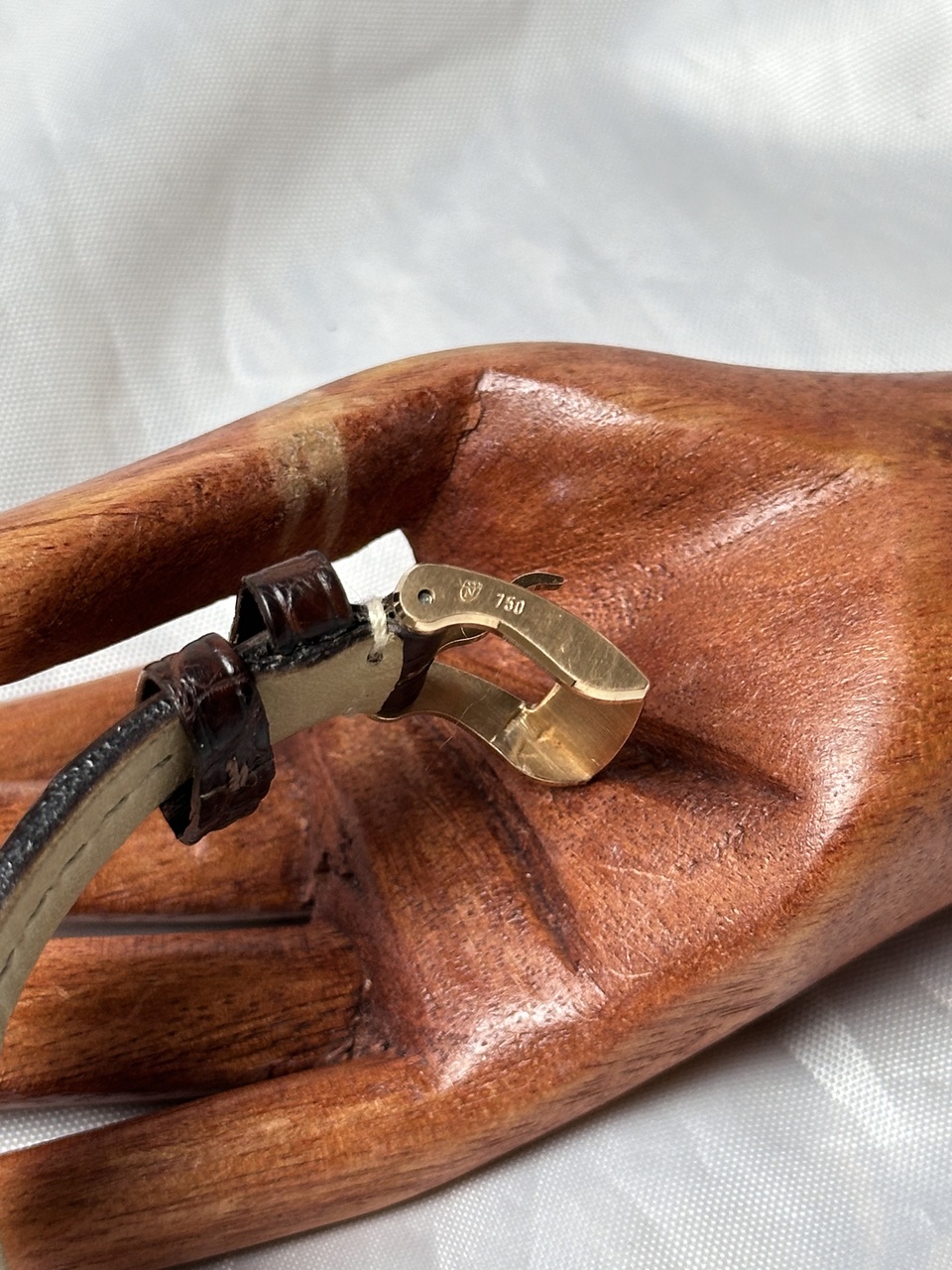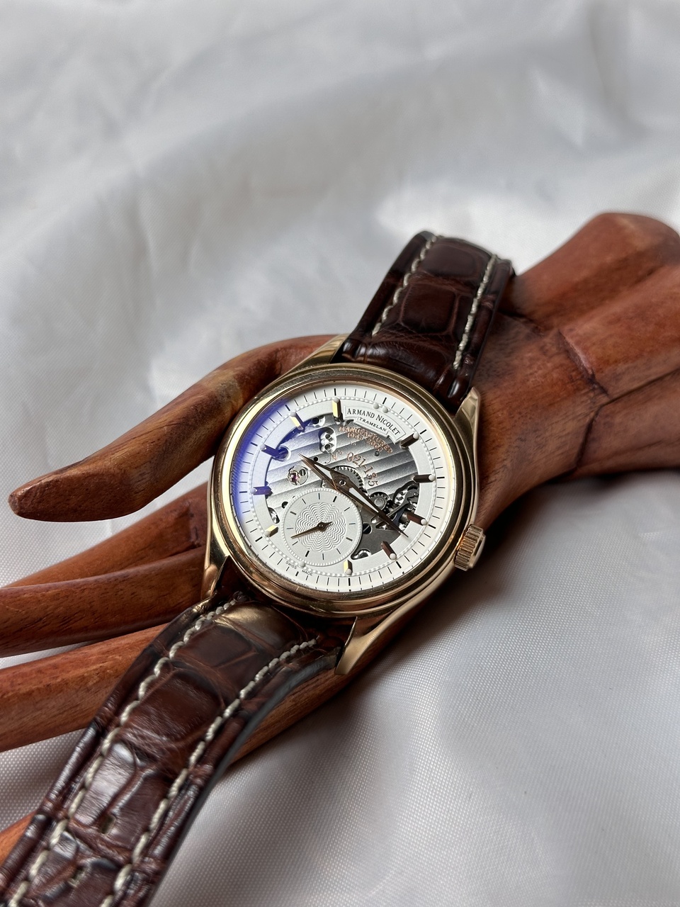 Корпус из розового золота, 43 миллиметра чистой элегантности, который обнимает ваше запястье, как старый друг.