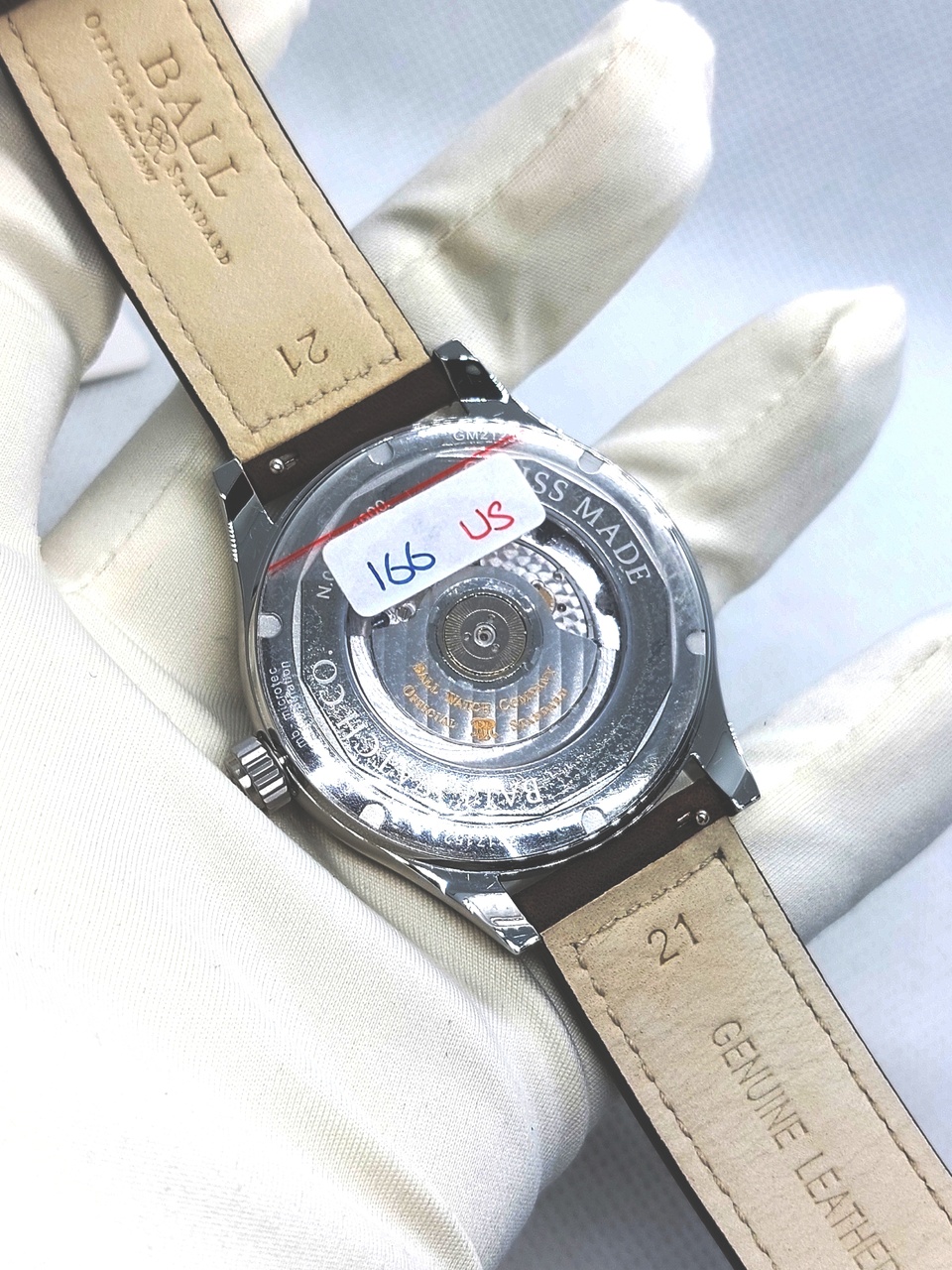 Ball оснащены кожаным ремешком из телячьей кожи коричневого цвета с белой прострочкой и классической застёжкой на которой нанесен логотип бренда.