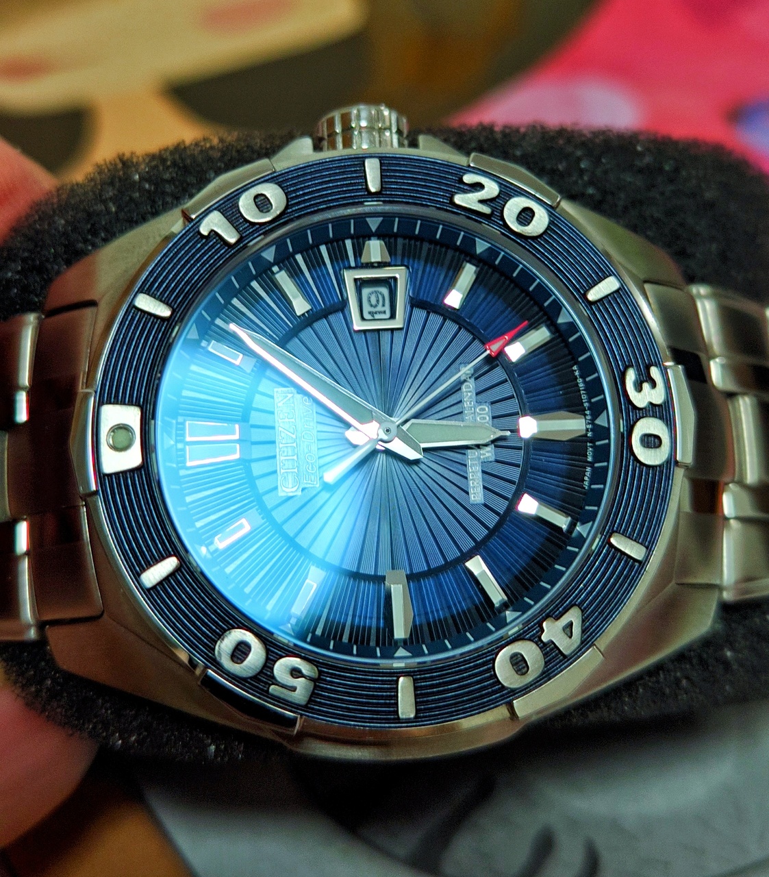 Глубокий синий циферблат завораживает своими изменениями оттенка при смене освещения.