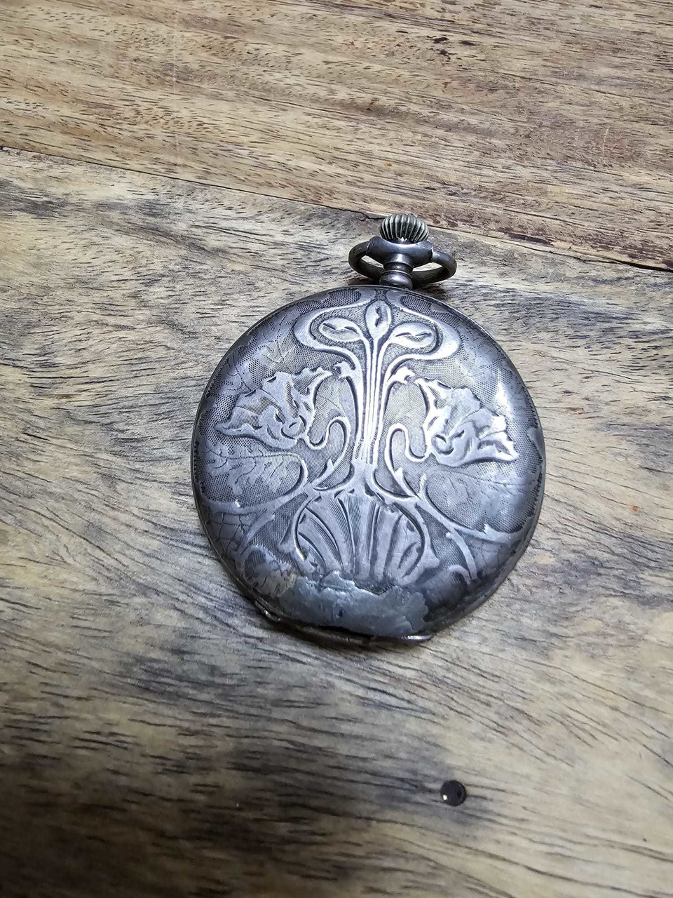 Порядок выемки механизма - выкручивается не до конца крепежный винт заводного ключа (со стороны баланса, он самый мелкий на механизме), вынимается ключ, откручиваются 2 крепежных винта механизма к кейсу, с противоположной стороны снимается серебряный рант под стекло и вынимается механизм, внутри кейса должна находиться стальная пластинчатая пружина. Как выглядели секундная, часовая и минутная стрелки сказать сложно.