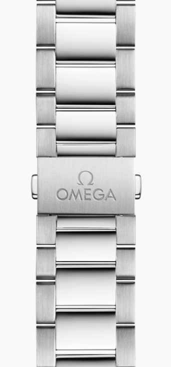 Браслетная застежка “бабочка”, раскладывающаяся при нажатии на кнопки двойной системы блокировки, с гравированной эмблемой Omega