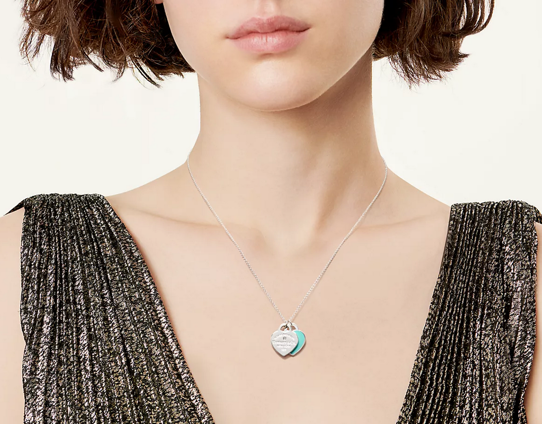 TIFFANY & CO Blue Double Heart Tag Pendant with Diamond- очень красивая женская подвеска в виде двух сердец с брильянтом