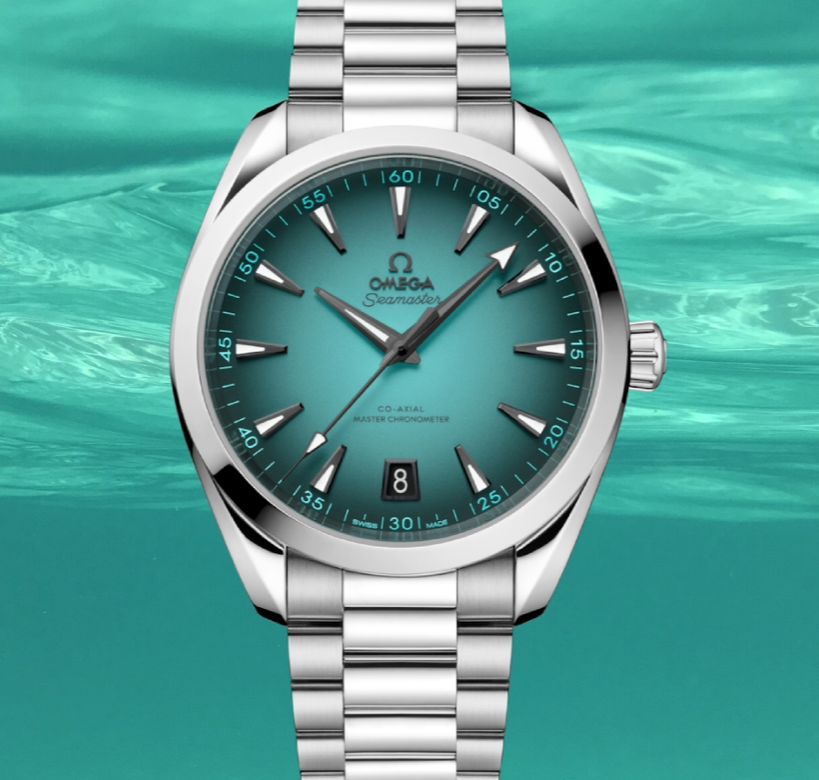 Цвет циферблата: Лакированный циферблат бирюзового цвета с градиентом. Аппликация часовых индексов и стрелки с PVD покрытием серого цвета. Люминесцентный состав Super-LumiNova белого цвета.
