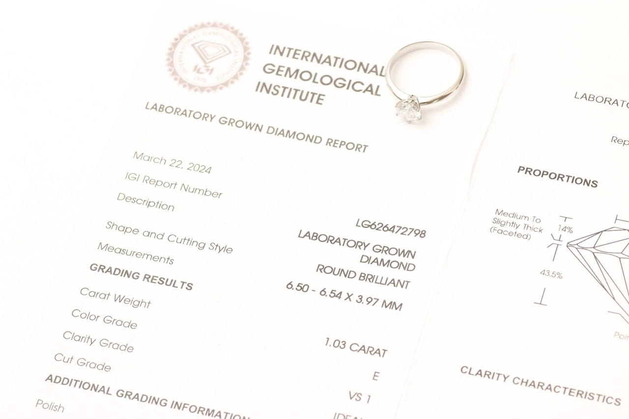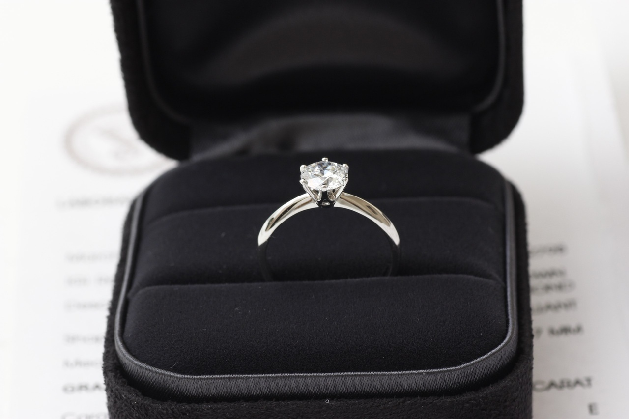 КОЛЬЦО С ТОПОВЫМ (ЛАБОРАТОРНО ВЫРАЩЕННЫМ) БРИЛЛИАНТОМ 1.03 КАРАТ E/VS1 TRIPLE EXCELLENT (EX/EX/EX) СЕРТИФИКАТ IGI