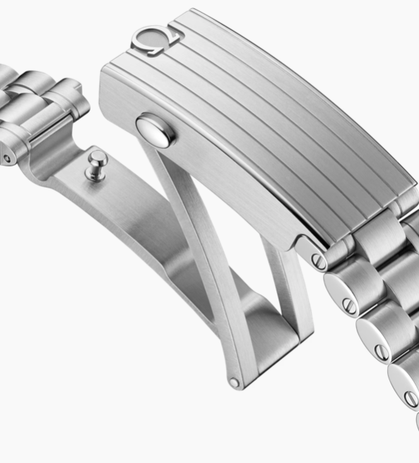 Застежка: Браслетная, раскладывающаяся при нажатии на кнопки двойной системы блокировки, с системой регулировки длины.