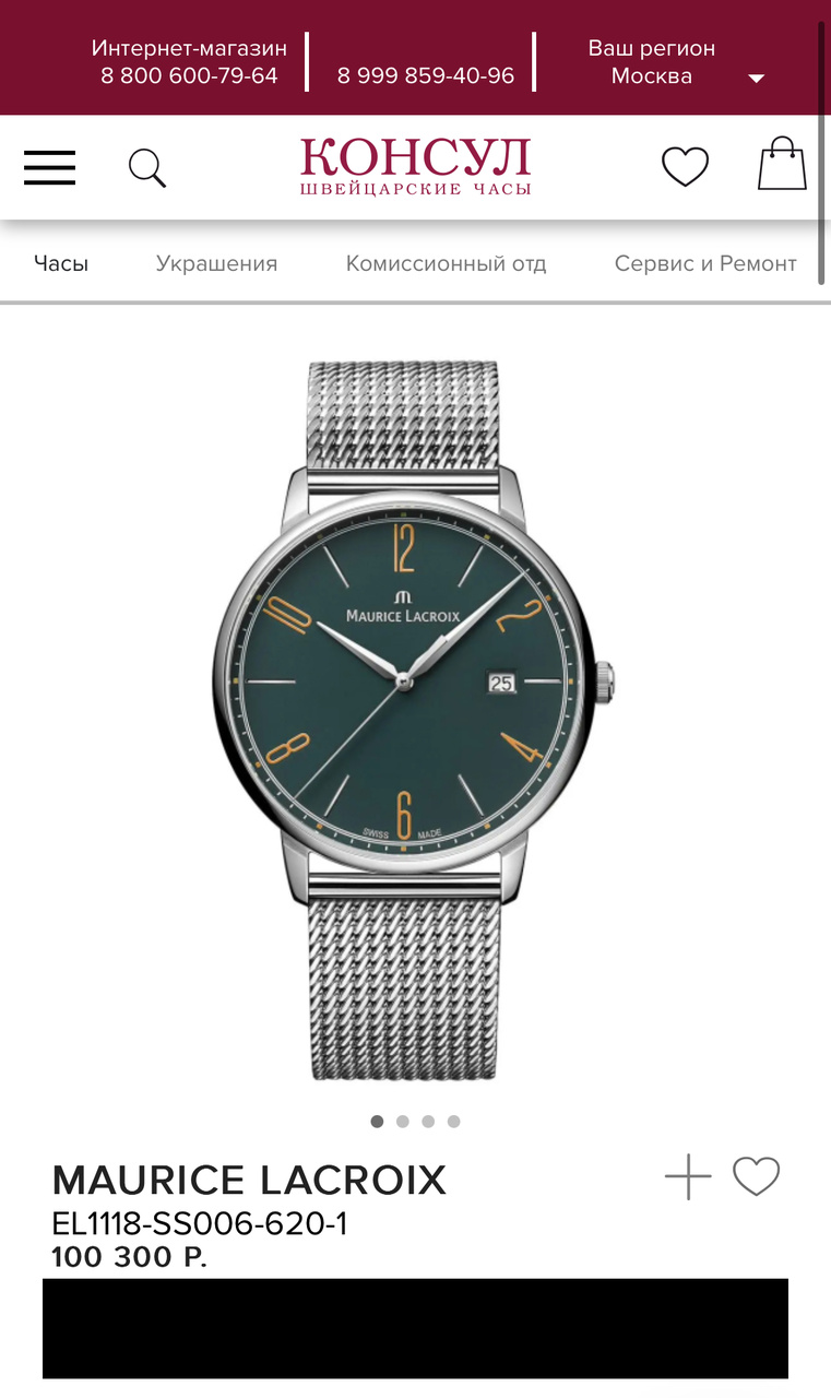 MAURICE LACROIX Eliros (красивый темно-зелёный циферблат, браслет)