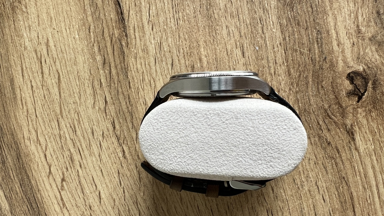 корпус из нержавеющей стали с полировкой и пескоструйной обработкой, рифленый безель, плоское сапфировое стекло с антибликовым покрытием,