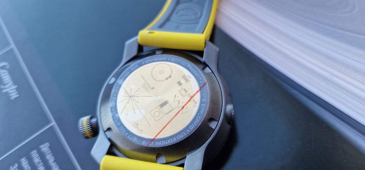 Часы посвящены Вояджер (англ. Voyager, буквально — «Путешественник») — название двух американских космических зондов, запущенных в 1977 году, а также проекта по исследованию дальних планет Солнечной системы с участием аппаратов данной серии.