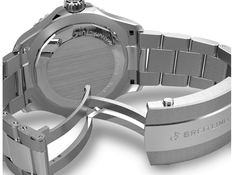 Браслет: в стиле Professional III с 3 рядами литых звеньев из нержавеющей стали, поверхности с различными видами финишной обработки, ширина 24/20 мм. Браслетная застежка, раскладывающаяся при нажатии на кнопки двойной блокировки, украшена гравировкой и эмблемой бренда Breitling.