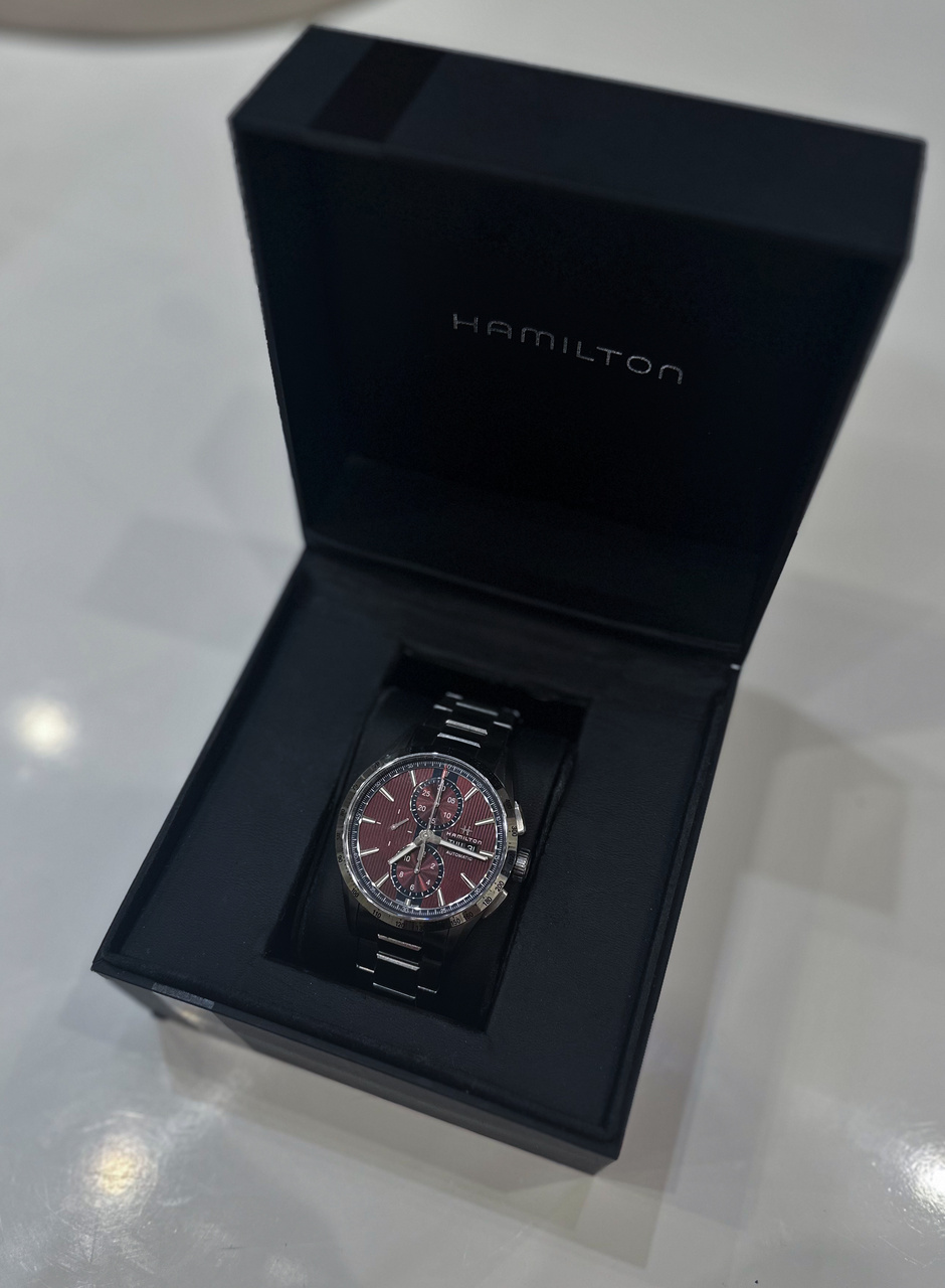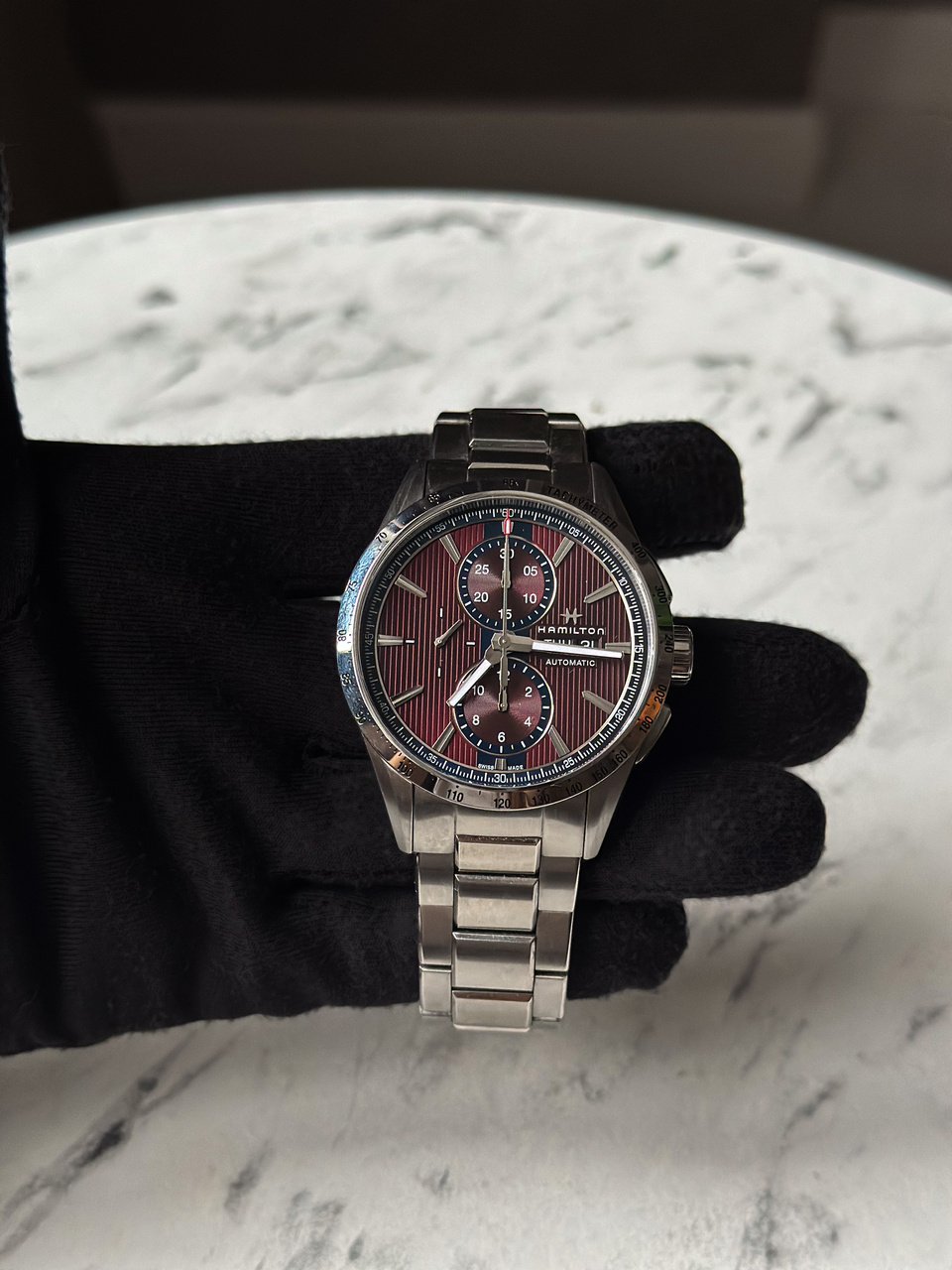 Часы Broadway в бордовом оформлении, пополнившие коллекцию Hamilton современным свежим образом, однозначно не затеряются на общем фоне. Автоматический хронограф является наглядным примером гармоничного сочетания безупречного стиля и богатого внутреннего содержания в часах, созданных для жителей современных мегаполисов.