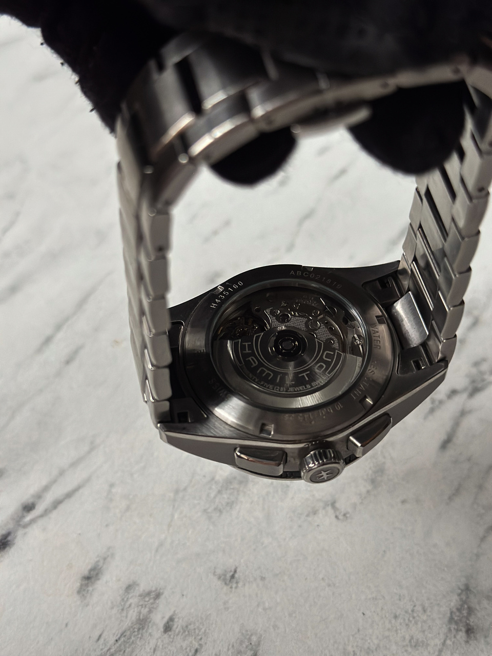 Высокоэффективный автоматический механизм хронографа H-21 с повышенным 60-часовым запасом хода идеально подходит для спортивных моделей. Нанесенная на мост ротора фигурная буква «H» позволяет безошибочно определить происхождение механизма.