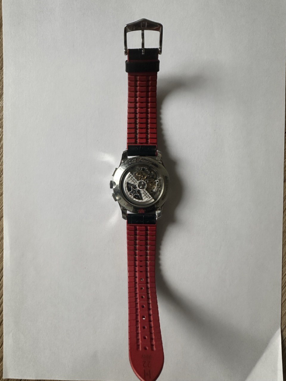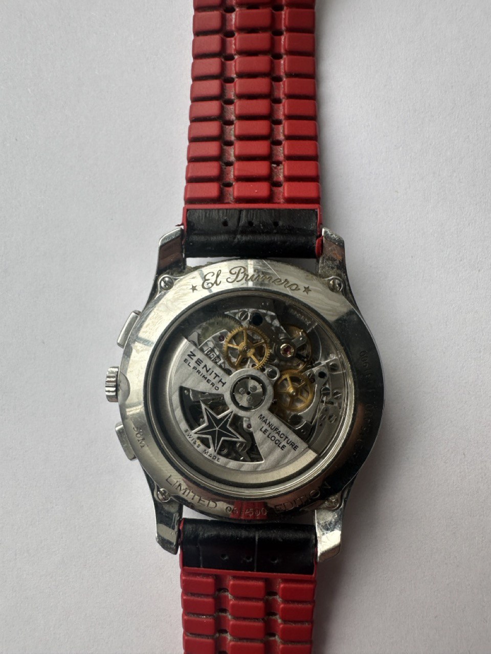 Корпус: нержавеющая сталь. 42 мм. Автоподзавод. Прозрачная задняя крышка. Ремешок - крутой Hirsh (аллигатор + каучук), пряжка родная Zenith.