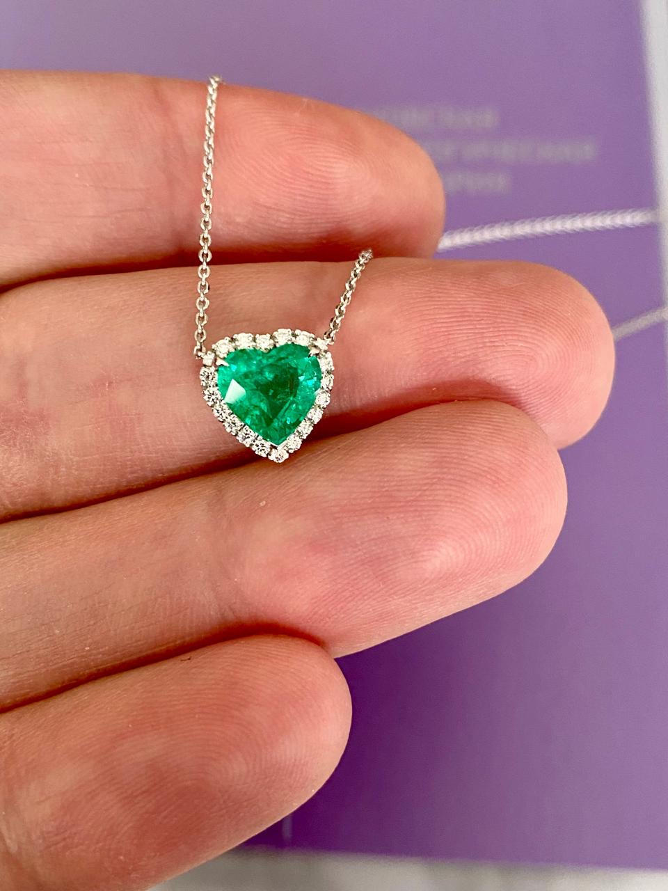 В продаже колье с шикарным изумрудом огранки "Сердце" 1,54 карата в обрамлении мелких бесцветных бриллиантов!