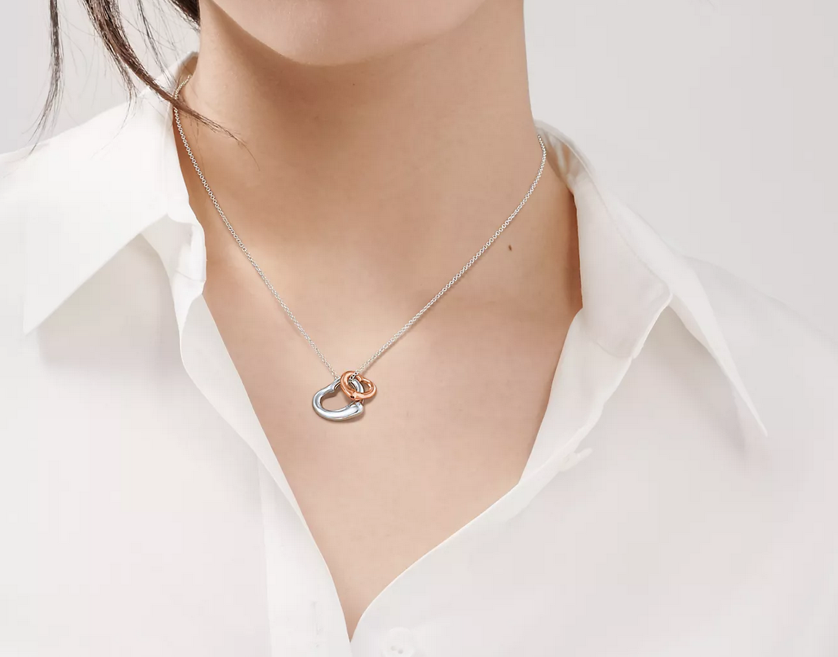 TIFFANY & CO Open Heart Pendant - очень красивая подвеска в виде двух сердец (серебро и золото 750-й пробы)