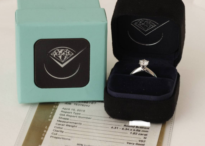КОЛЬЦО С ТОПОВЫМ БРИЛЛИАНТОМ 1.02 КАРАТ H/VS2 СЕРТИФИКАТ GIA