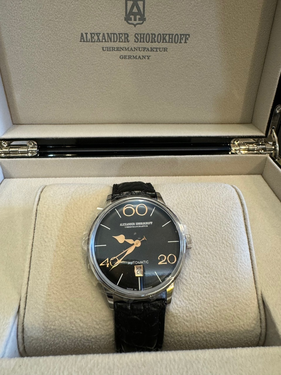 Часы от известного немецкого производителя часов Alexander Shorokhoff. Благодаря яркому авангардному дизайну имеющему Российские корни, бренд довольно известен в часовом мире и все более и более популярен среди любителей часов и коллекционеров. Огромное количество наград за выдающийся дизайн, большое внимание прессы и собственное лицо, которое можно встретить далеко не у всех часовых брендов - все это заслуга Александра Шорохова, создателя не только самого бренда, но и дизайна всех производящихся под этим брендом часов. В прошлом наш соотечественник, очень интеллигентный и приятный в общении человек, мастер своего дела, носитель русской культуры, претворяющий в жизнь свои творческие идеи в часовом искусстве.