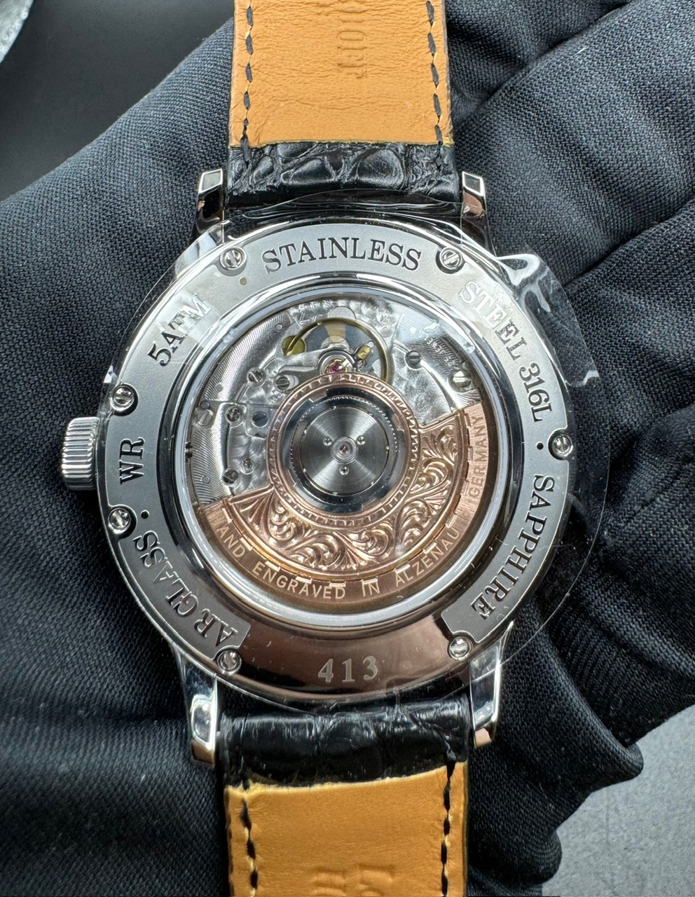 -Механизм: автоматический завод Sellita SW300, ротор декорированный ручной гравировкой