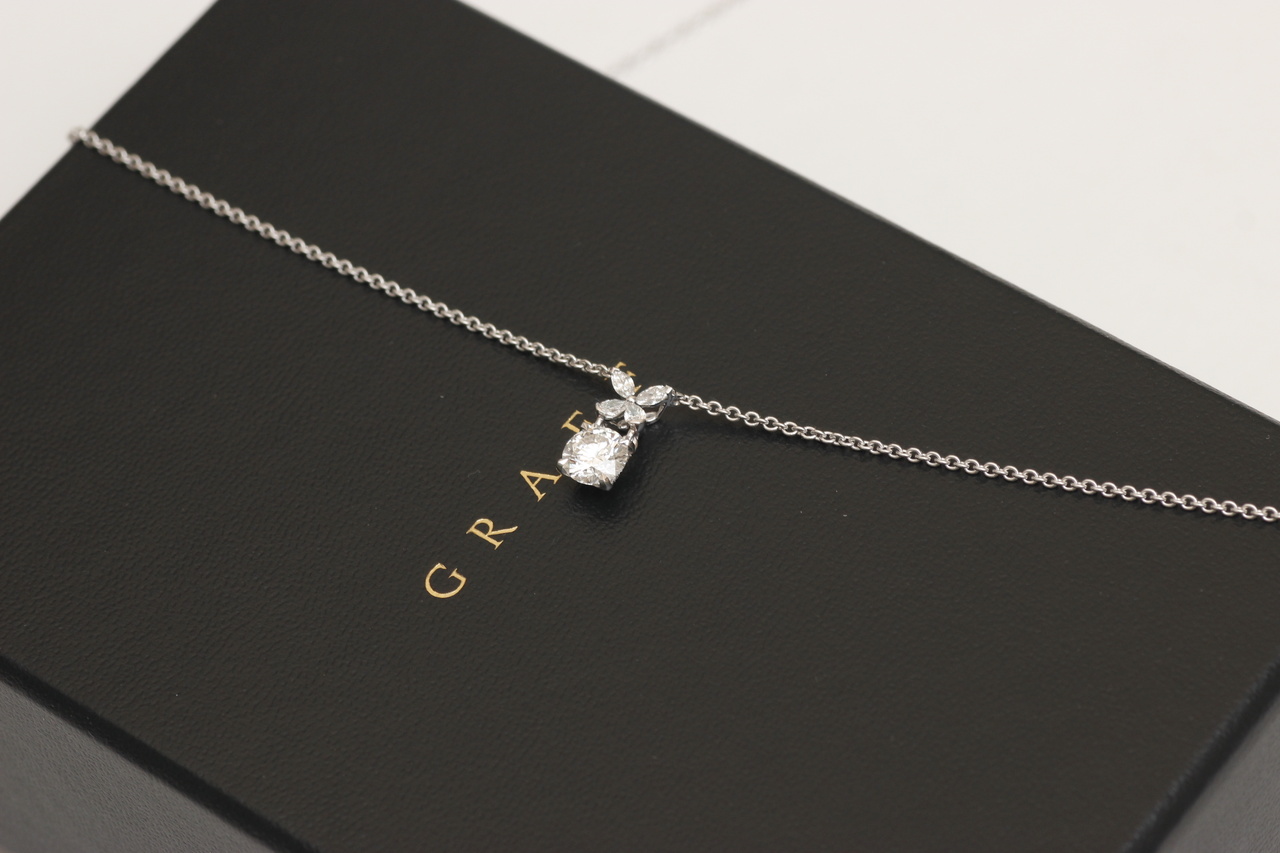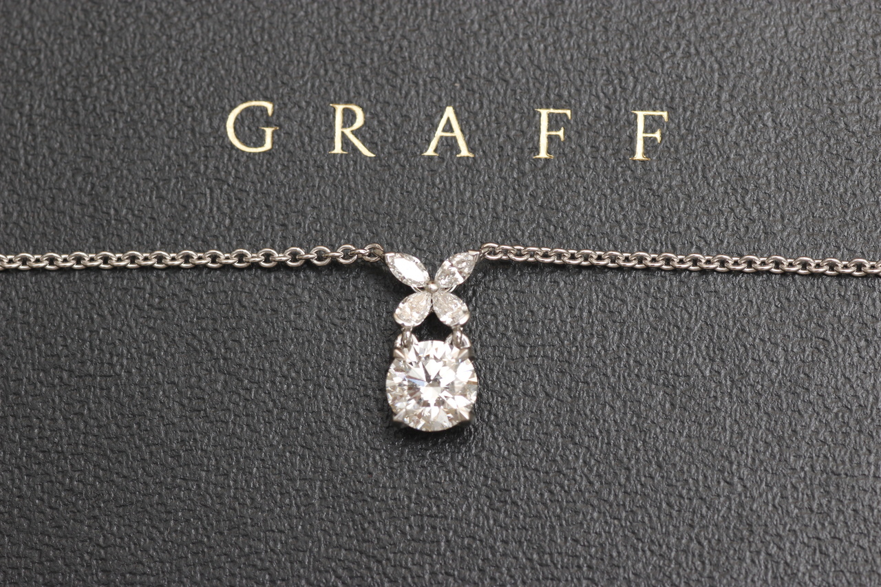 ПОДВЕСКА *GRAFF* CLASSIC BUTTERFLY ROUND DIAMOND PENDANT RGP849 БЕЛОЕ ЗОЛОТО 750/БРИЛЛИАНТЫ 0,18 И 0.70 КАРАТ