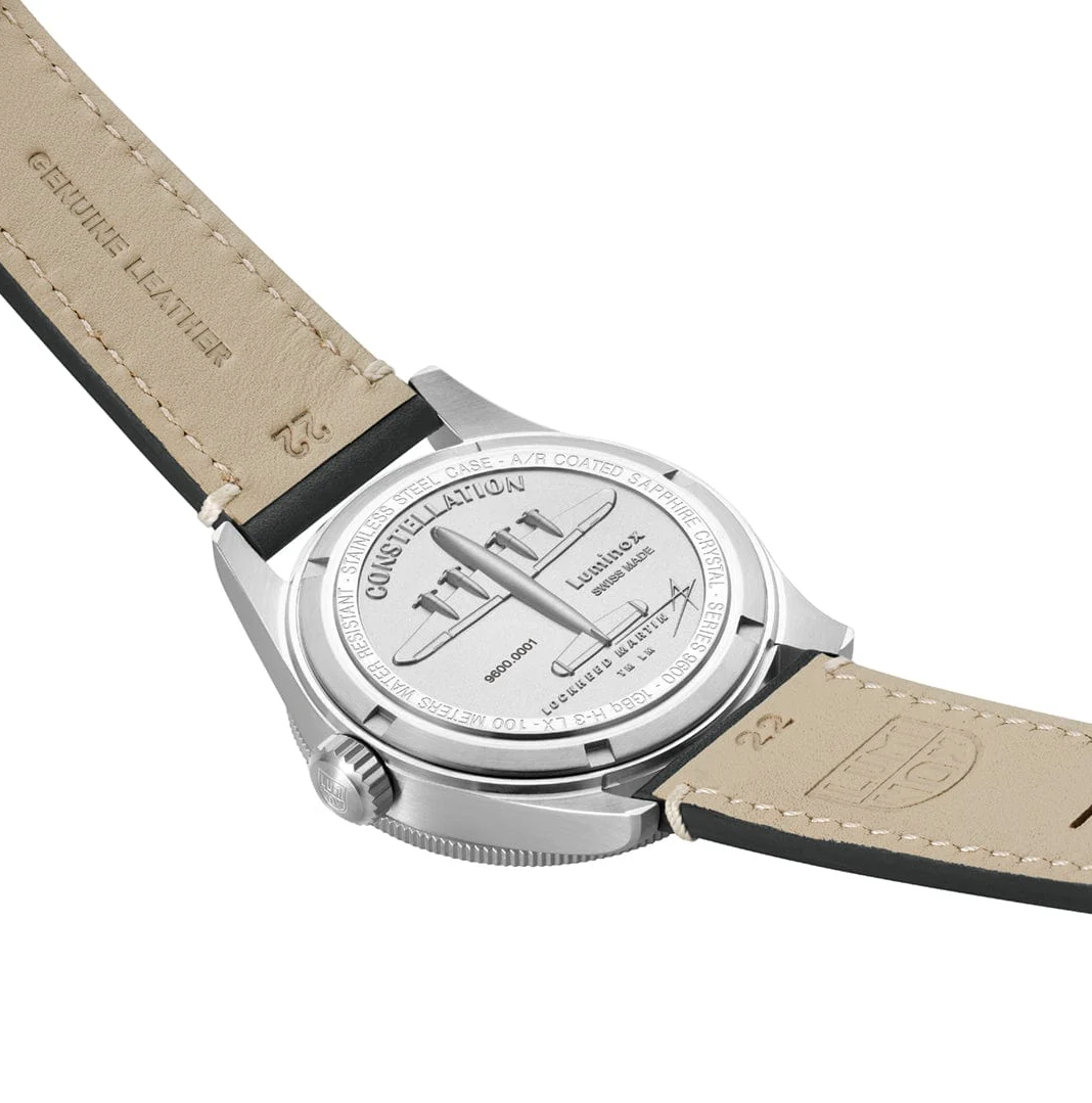 На задней крышке, выполненной из нержавеющей стали, вас ждет впечатляющий 3D-рисунок самолета Lockheed Martin CONSTELLATION®, который напоминает о бескрайних небесах и смелых полетах на большие расстояния. Эти часы — больше, чем просто аксессуар. Это ваш пропуск в мир безграничных возможностей.