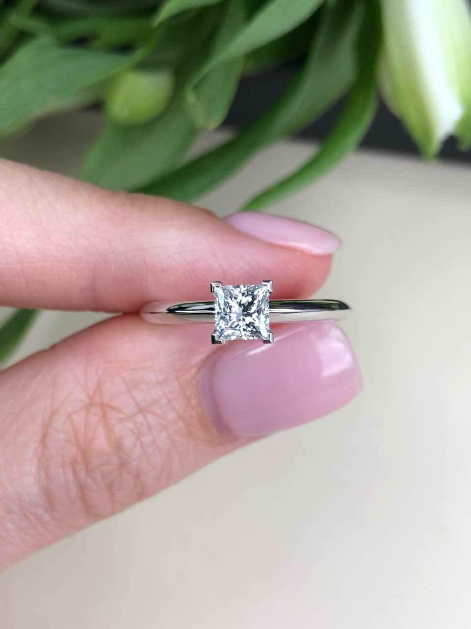 Кольцо белое золото с бриллиантом 0.51ct D/VVS2 новое (GIA и МГУ) недорого