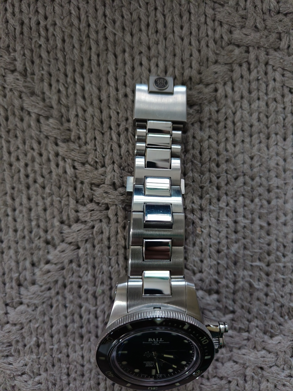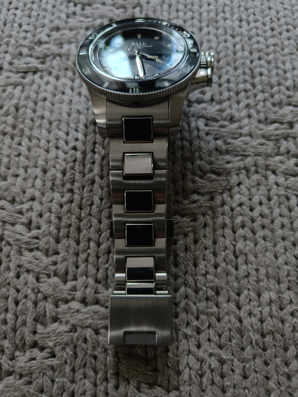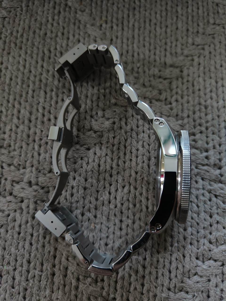 Браслет укорочен на 3 звена, на одном из них небольшая царапина (звенья прилагаются), имеет дайверское удлинение и мощную застёжку, крепится к корпусу двойным креплением.