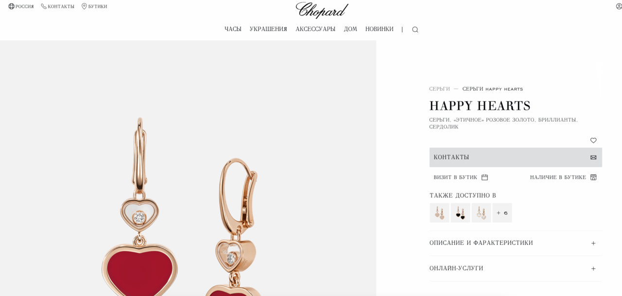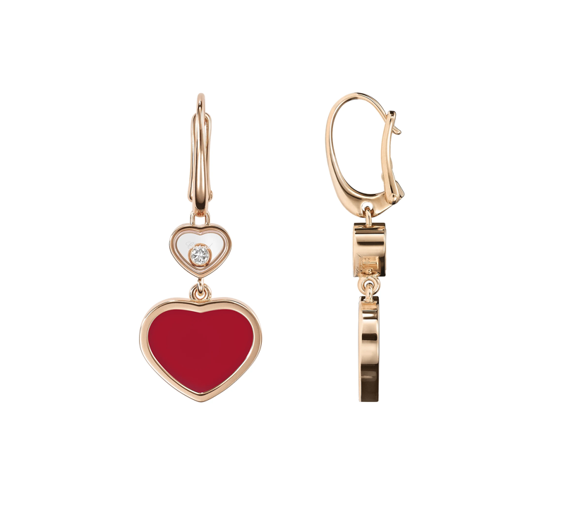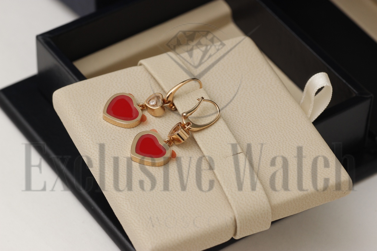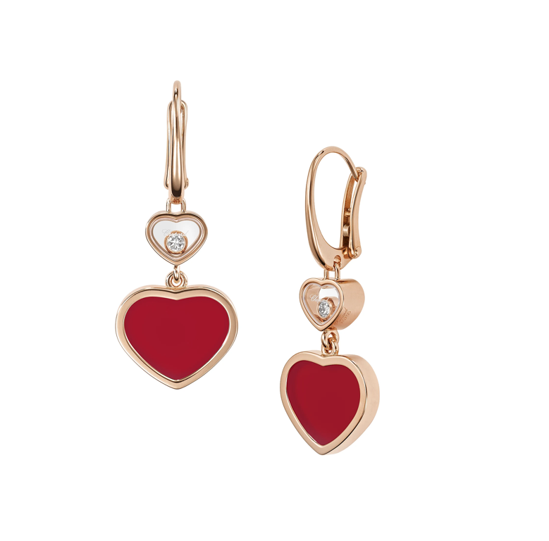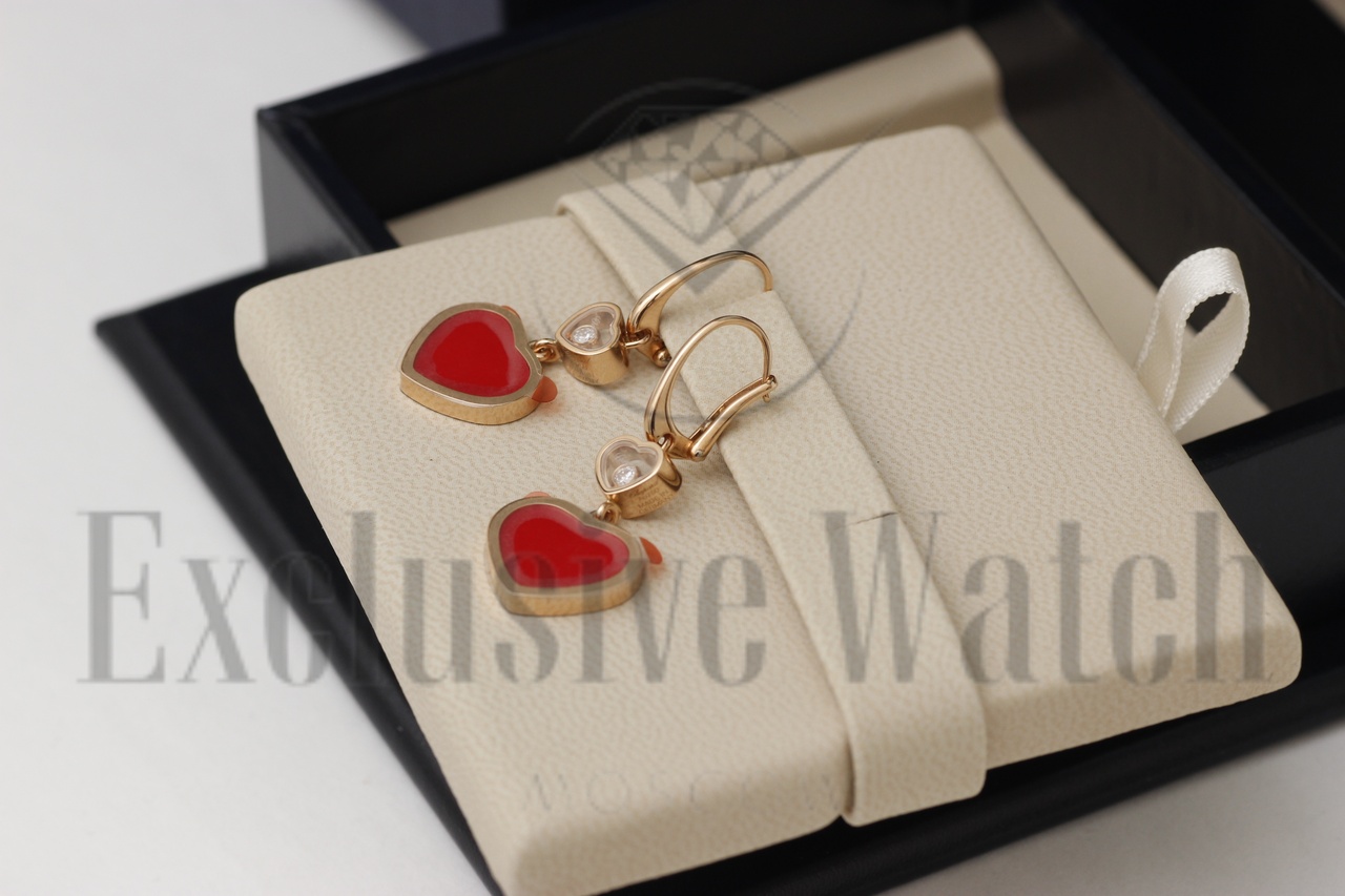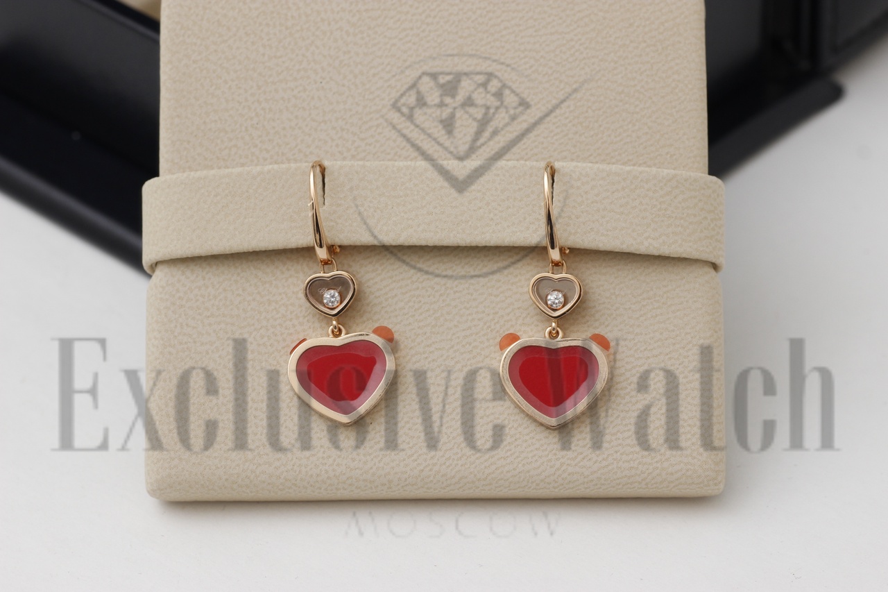 CЕРЬГИ *CHOPARD* HAPPY HEARTS 837482-5820/ РОЗОВОЕ ЗОЛОТО/ПЛАВАЮЩИЕ БРИЛЛИАНТЫ/СЕРДОЛИК