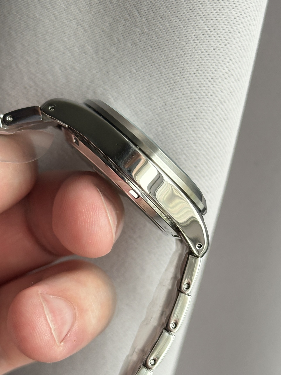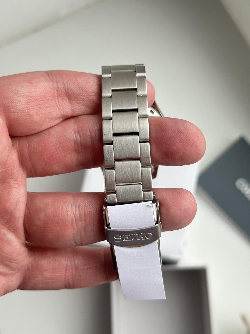 Внимание: часы приехали с небольшими царапками на браслете и корпусе. Показал на последних фотографиях. Абсолютно некритичные, с учётом того, что звенья эти можно снять. Защитная картонная обложка коробки помята и немного порвана. В цене учтено.