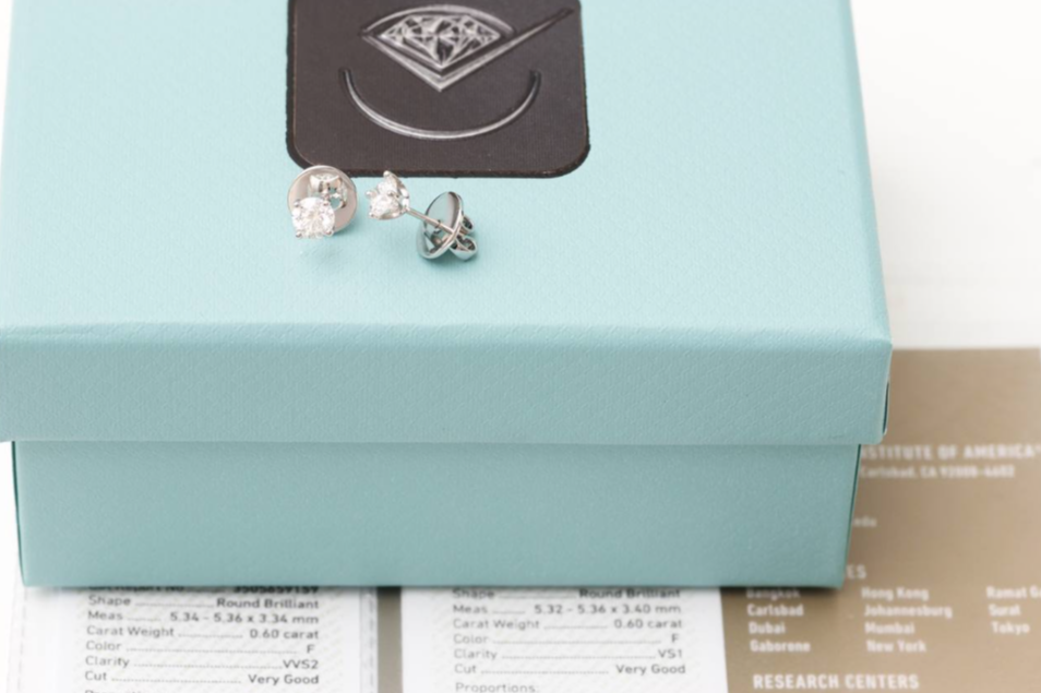 ПУСЕТЫ С ТОПОВЫМИ БРИЛЛИАНТАМИ 0.60 Ct. F/VVS2 - VS1 СЕРТИФИКАТ GIA