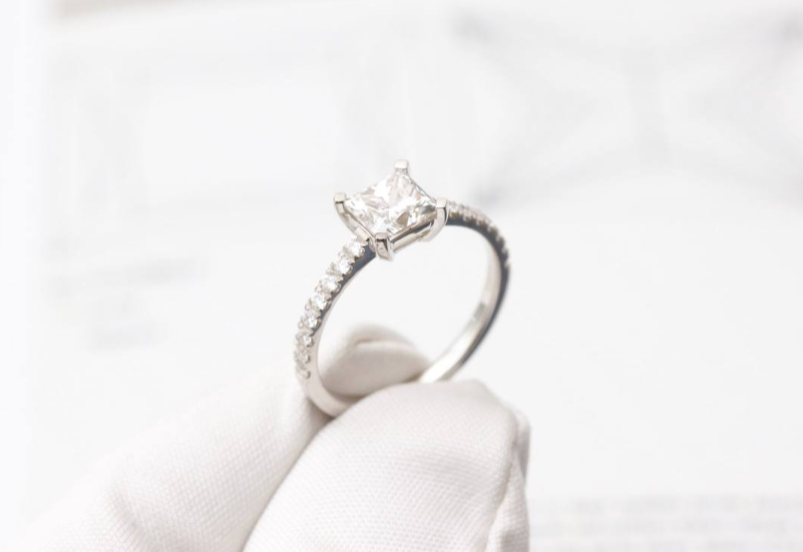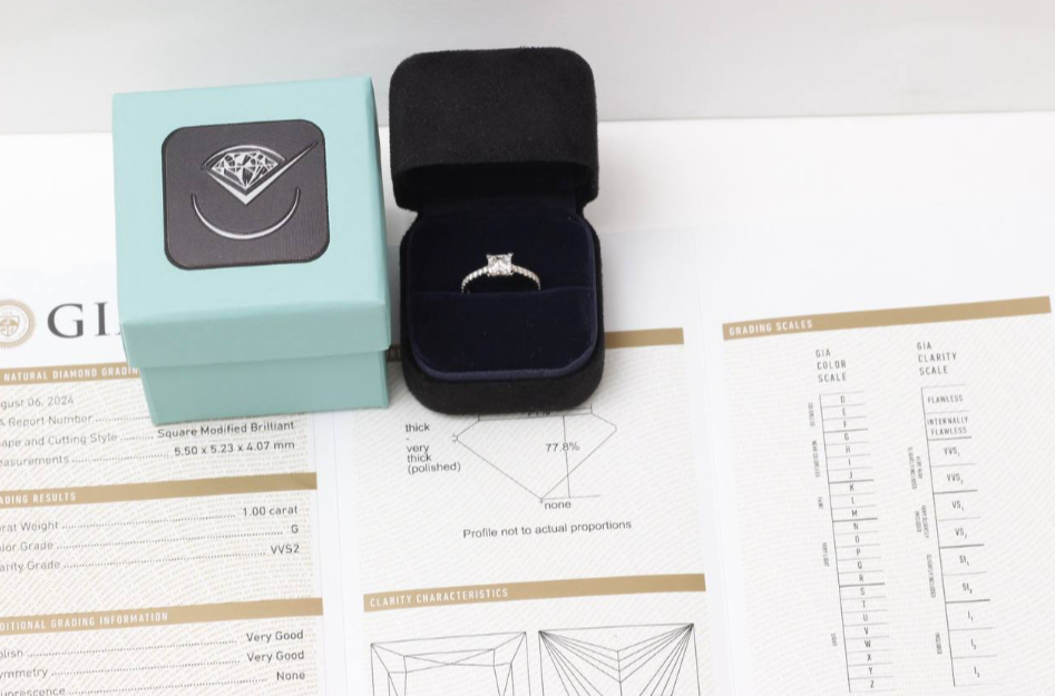 КОЛЬЦО С ТОПОВЫМ БРИЛЛИАНТОМ ОГРАНКИ ПРИНЦЕССА 1.00 КАРАТ G/VVS2 В БРИЛЛИАНТОВОМ PAVÉ (G/VS) СЕРТИФИКАТ GIA
