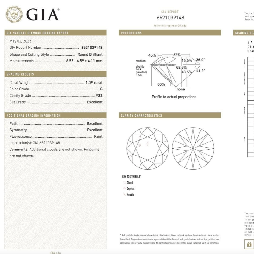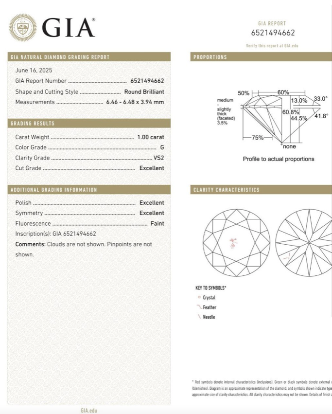 ПУСЕТЫ 2х 1.00 КАРАТ G/VS2 СЕРТИФИКАТ GIA