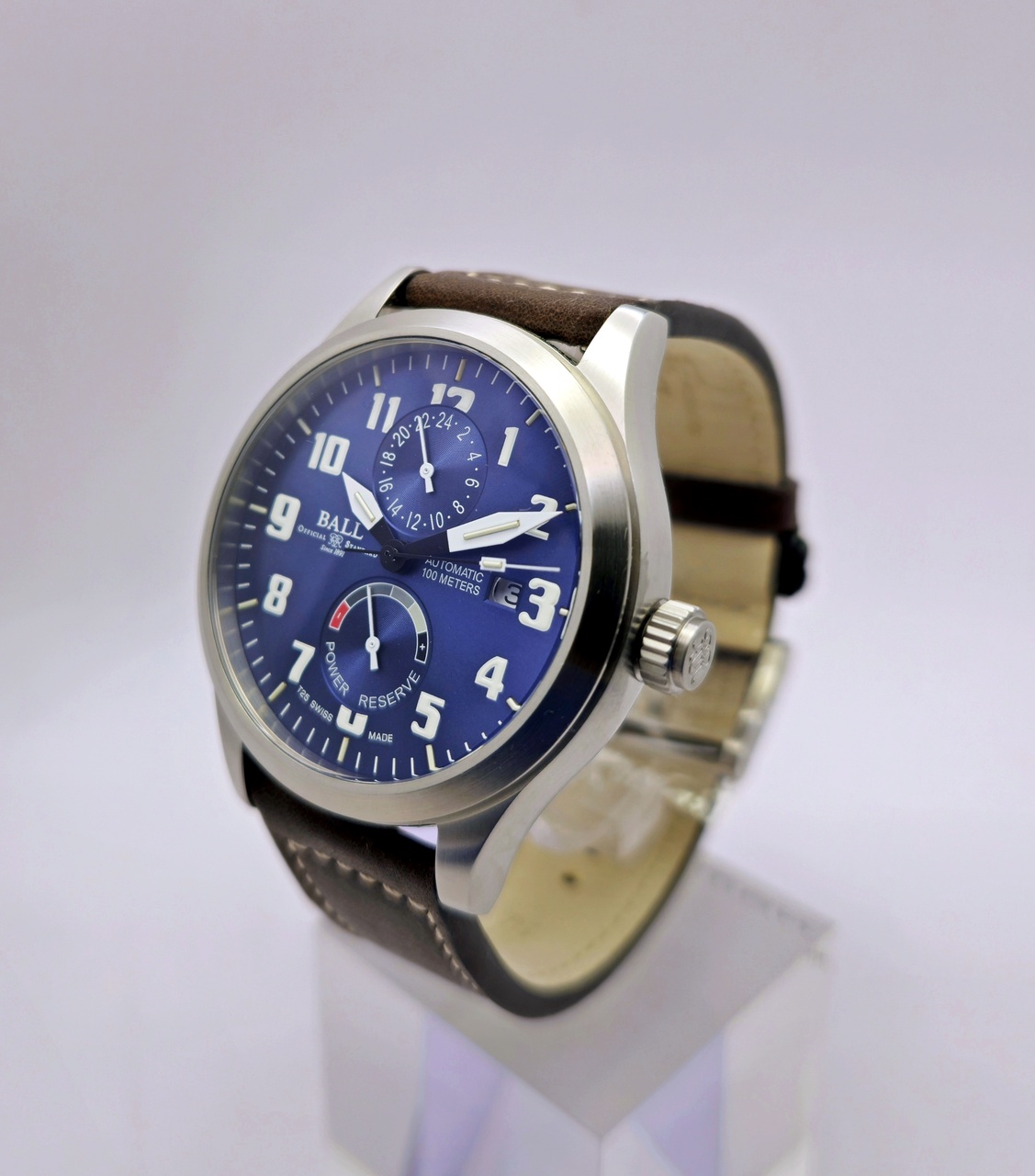 В продаже новые шикарные мужские часы от швейцарской фирмы BALL модель Engineer Master II Voyager Limited Edition GMT в размере корпуса 44мм. Сапфировое стекло с антибликовым покрытием, автоматический механизм с запасом хода на 42 часа, запас хода/второй часовой пояс и красивый синий циферблат, всё это защищено в корпусе с водозашитой 100м (10атм) с завинчивающейся заводной головкой. Ночью часы тоже не оставят вас без внимания, тритий делает своё дело и не нужно подзаряжаться ему на солнце. Запатентованная противоударная система Ball, обеспечивающая замечательную ударопрочность, испытанную до 5000G. Завинчивающаяся заводная головка. Лимитированная серия.