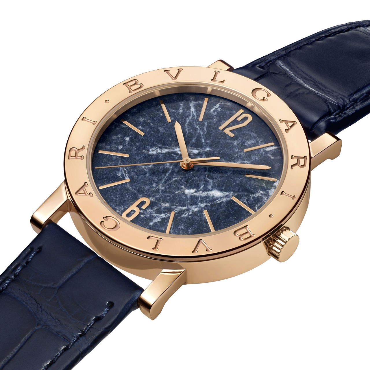 Чествуя любимца коллекционеров, Дом представляет четыре новые исключительные модели Bvlgari Bvlgari, предлагаемые в корпусе двух размеров – 26 мм и 38 мм – с циферблатами из мрамора. К этому сияющему долговечному материалу, мгновенно напоминающему о римском величии, Bvlgari относится с тем же почтением, что и к драгоценным камням. Дом давно использует мрамор, прежде всего в ювелирных творениях, но работа с ним сопряжена со значительными трудностями, особенно при обработке таких тонких деталей, как циферблат. Благодаря специфике изготовления каждый экземпляр - особенный, а естественные прожилки мрамора делают его поистине уникальным в своем роде.