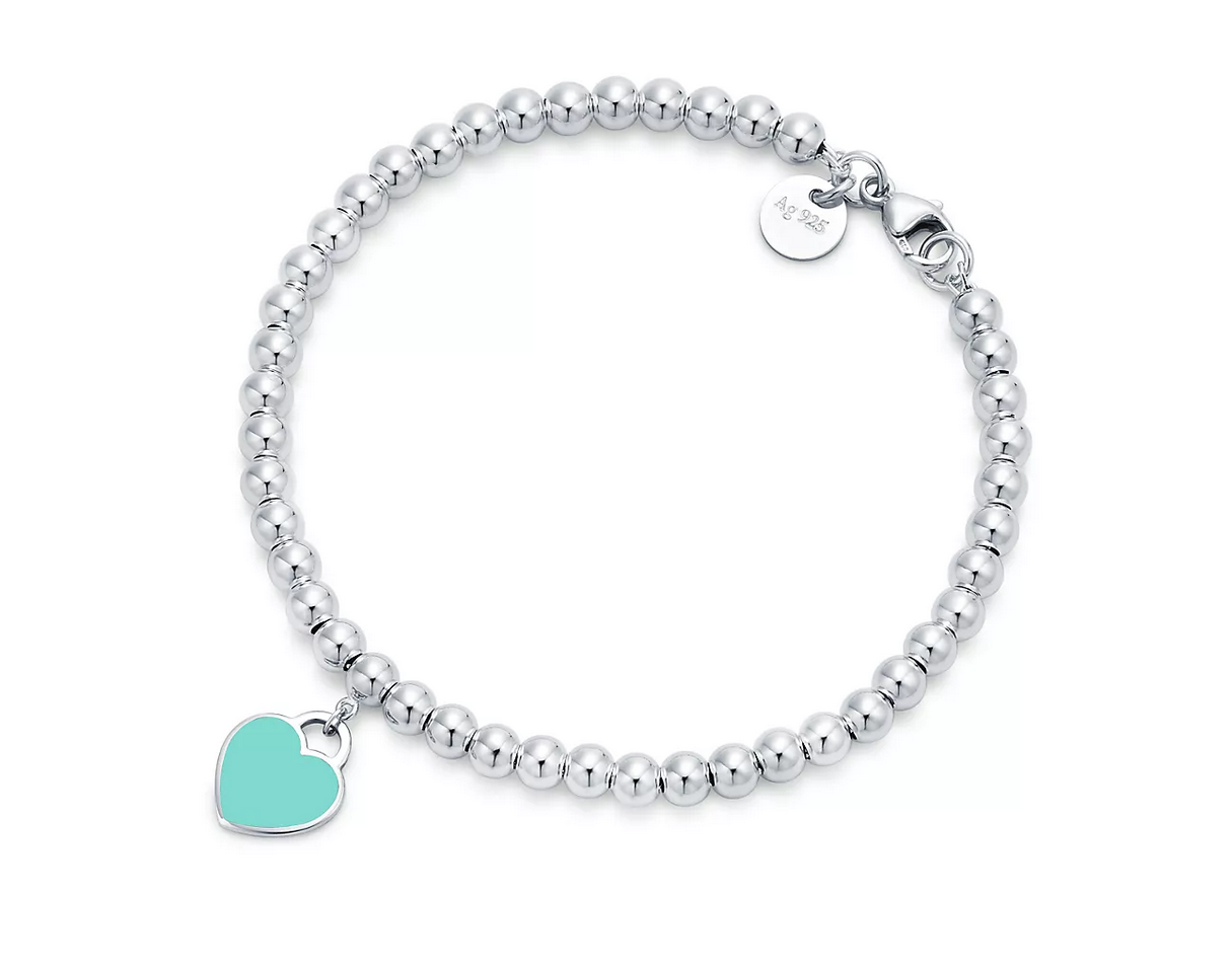 TIFFANY & CO Return To Tiffany Blue Heart Tag Bead Bracelet - элегантный женский браслет с голубым сердечком