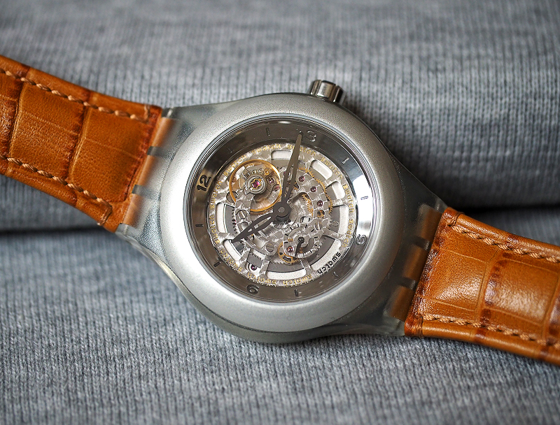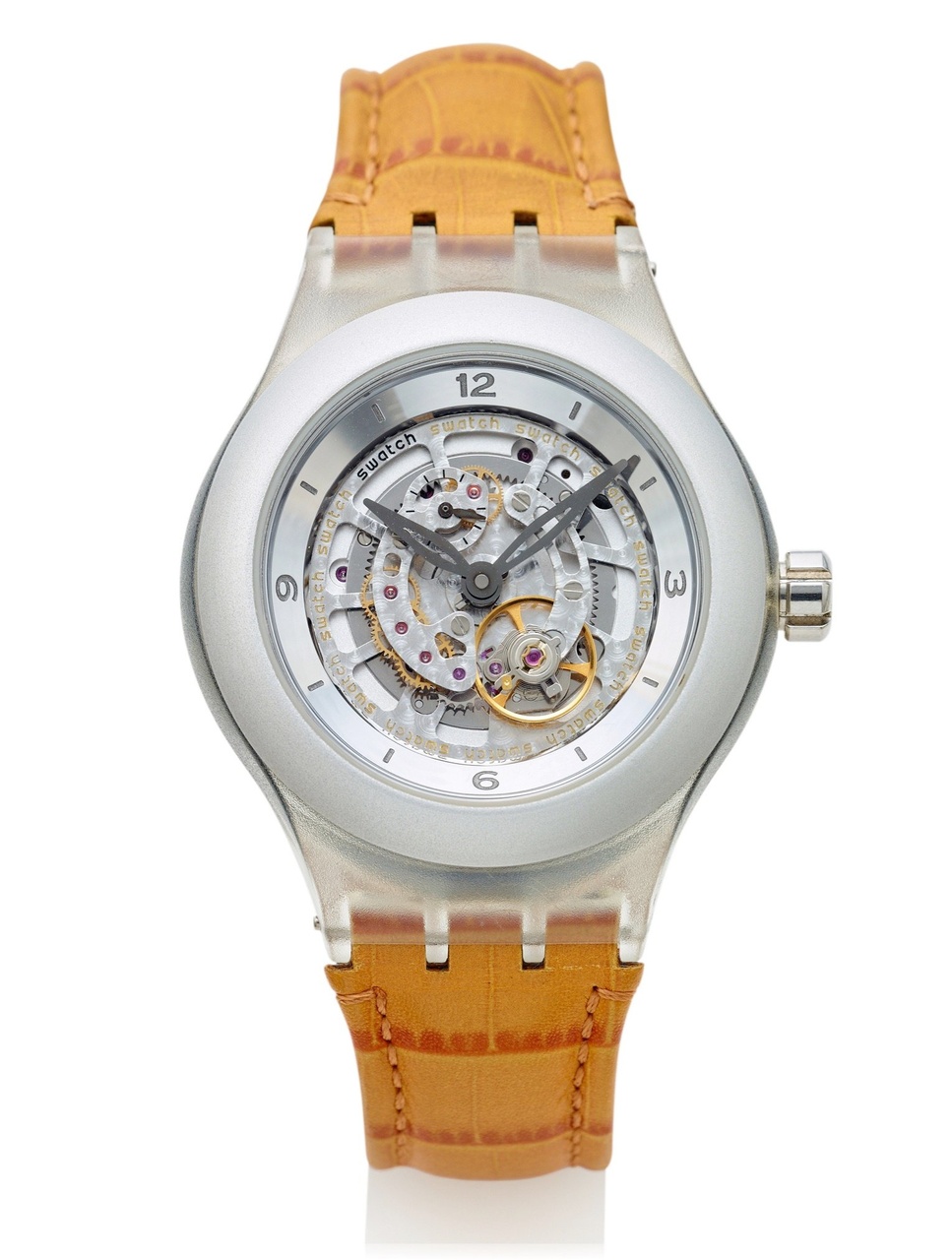 Уникальная модель от компании Swatch выпущенная Николасом Хайеком-старшим в 2001 году в честь открытия бутика Swatch на Вандомской площади в Париже тиражом всего в 2222 экземпляра. Купить ее можно было только в одном этом бутике. Компания Swatch, известная всему миру как один из крупнейших производителей пластмассовых часов, неожиданно выпустила сложные механические часы высокого качества с турбийном, а точнее с "каруселью". Таким образом компания показала свой огромный опыт, накопленный при производстве часов.