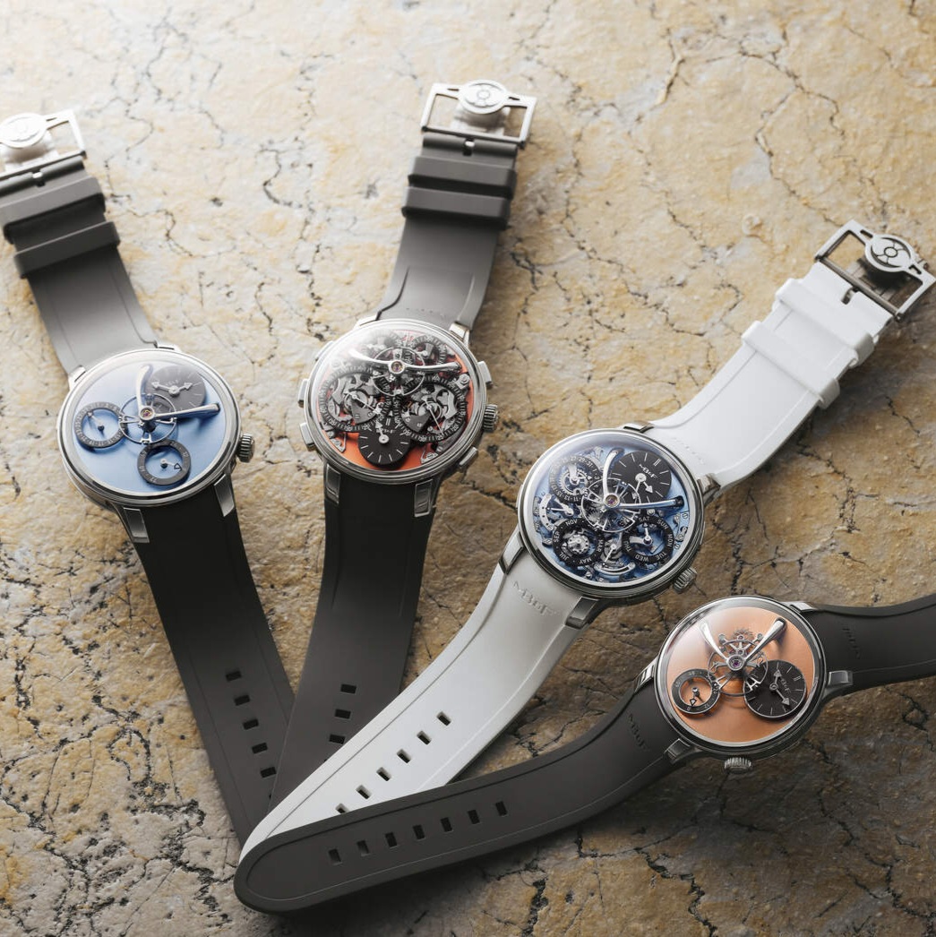 Часы довершает гладкий каучуковый ремешок белого или серого цвета – на выбор клиента. Хотя формально это и не лимитированная серия, в силу ограниченности производственных возможностей планируемый годовой выпуск этой коллекции не превышает несколько десятков экземпляров.