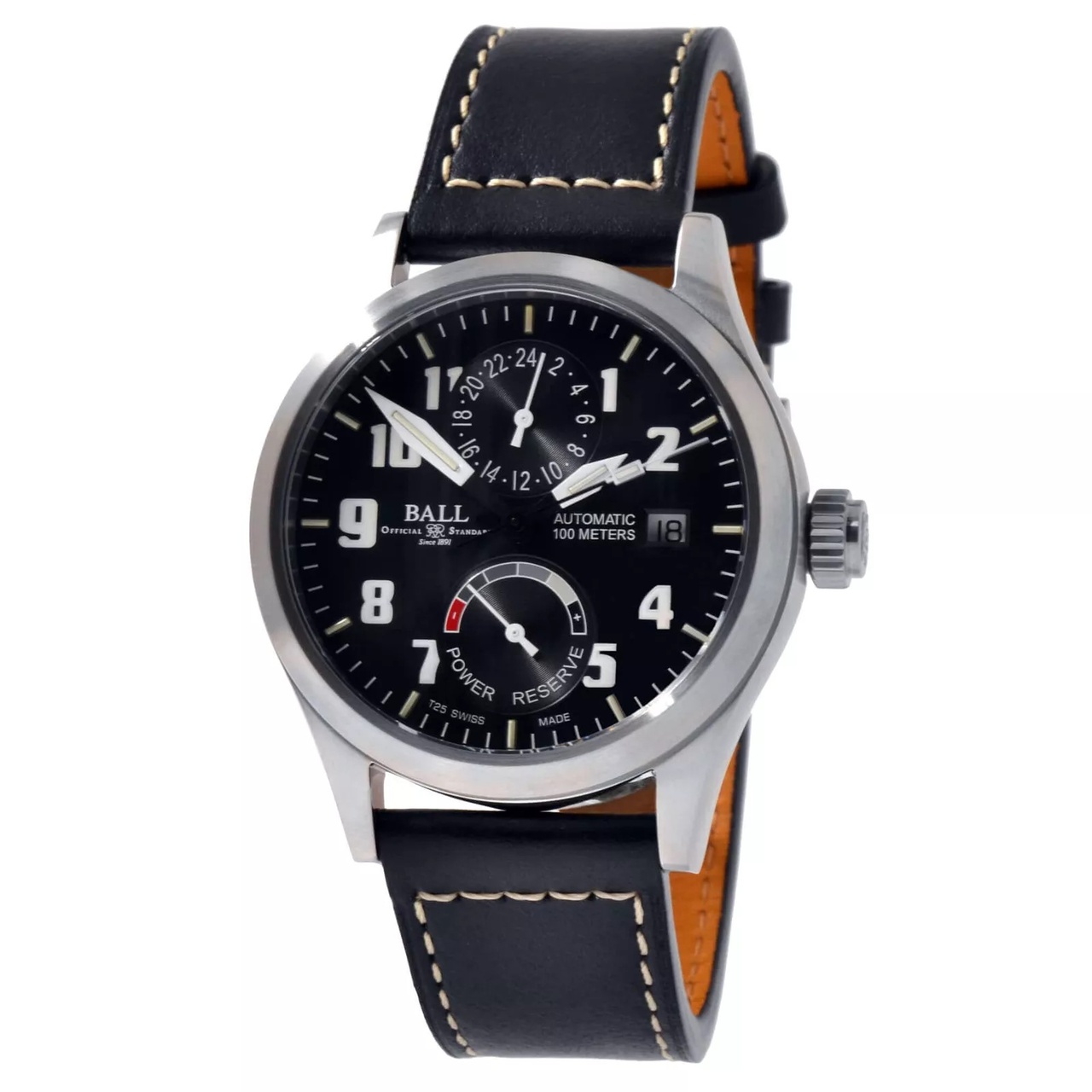 Часы GM2126C-LJ-BK оснащен швейцарским механизмом с автоподзаводом калибра RR1302 с 26 драгоценными камнями. Эти стильные часы также оснащены сплошным черным циферблатом с белыми вставками, серебристыми светящимися стрелками и часовыми метками с арабскими цифрами, запасом хода около 42 часов, 15 микрогазовыми трубками на часовой, минутной и секундной стрелках и циферблате для лучшей читаемости в ночное время, функциями отображения GMT и даты, устойчивым к царапинам сапфировым стеклом и водонепроницаемостью до 100 метров. Часы GM2126C-LJ-BK оснащены черным кожаным ремешком шириной 20 мм с застежкой-пряжкой. Мужские часы Ball GM2126C-LJ-BK Engineer Master II Voyager сделаны в Швейцарии