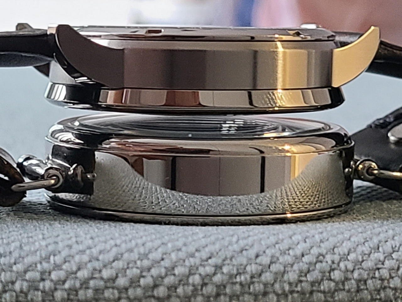 Стекло – выпуклый сапфир, смотрится отлично. Но в качестве бонуса я получил пылинку на обратной стороне этого сапфира, которую особенно хорошо видно на фото