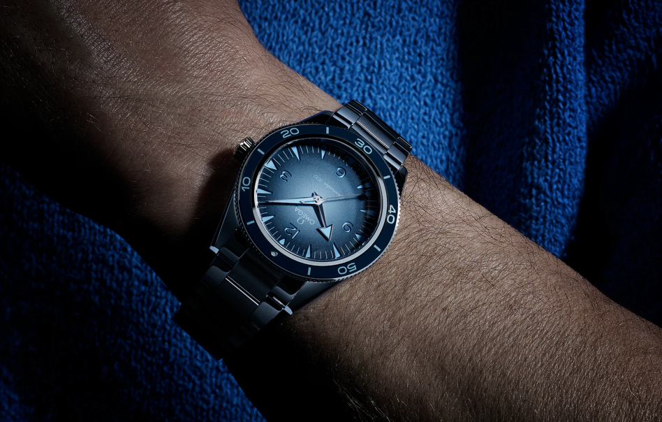 Цвет циферблата: Синего цвета с эксклюзивным оттенком Omega Summer Blue декорирован эффектом градиента, который подчеркивает высокую водонепроницаемость этих часов.