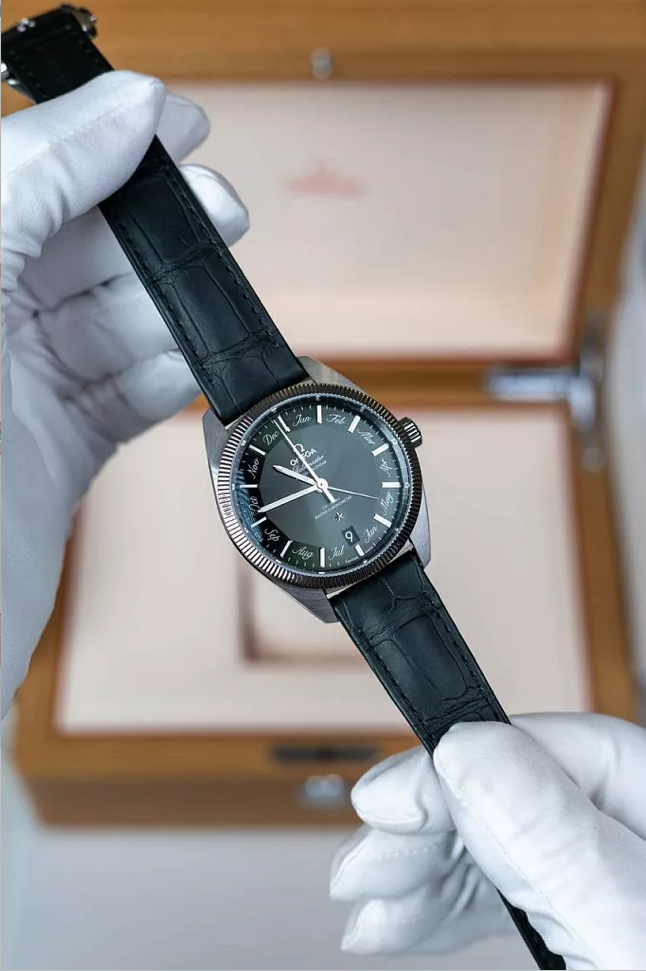 Циферблат: необычного болотно-зеленого цвета с радиальным сатинированием.