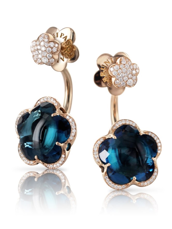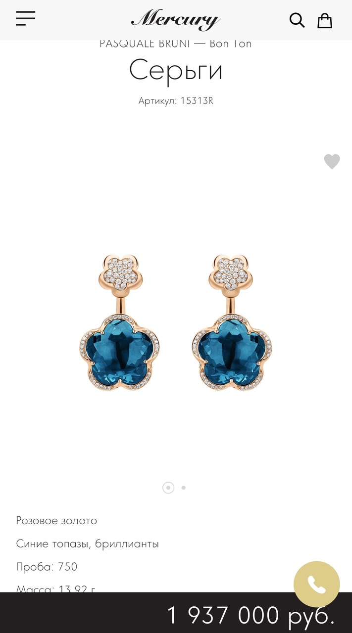 КАМНИ: белые бриллианты 0,58 карата, голубой лондон топаз, размер цветка 14 мм