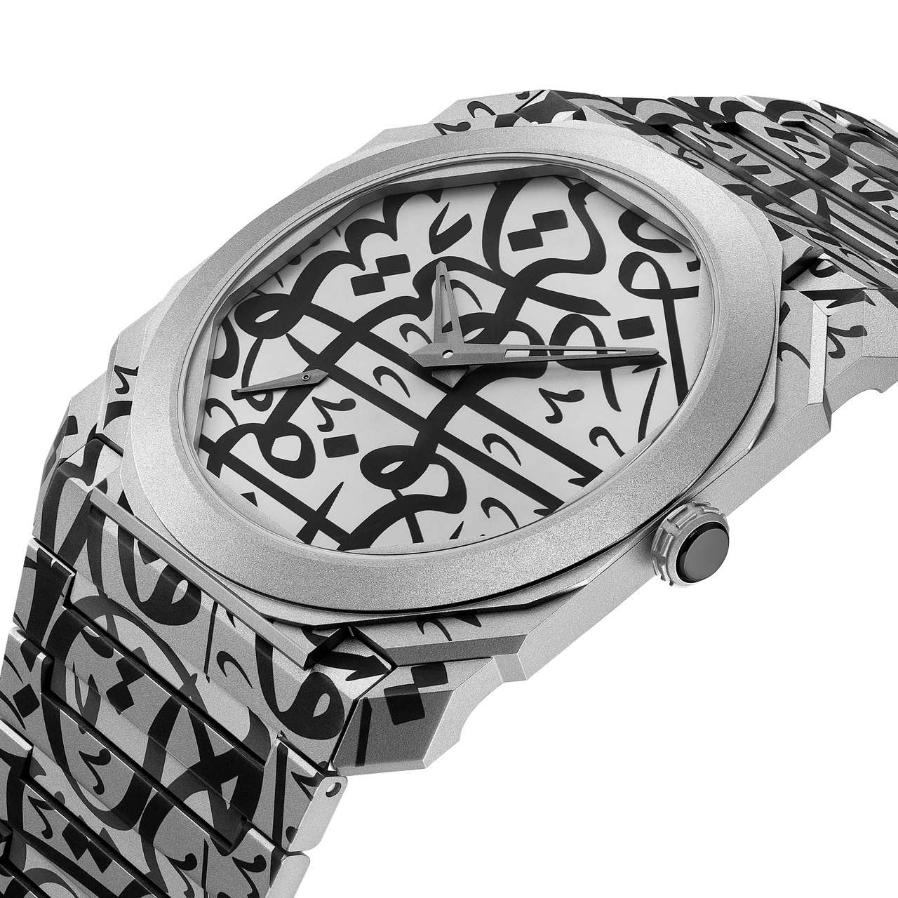 Лимитированная серия Mattar Bin Lahej x Octo Finissimo украшена лазерной арабской каллиграфией по титановому корпусу, браслету и циферблату. Вдохновением послужили слова Его Высочества Шейха Мохаммеда ибн Рашида Аль Мактума, вице-президента и премьер-министра ОАЭ и Правителя Дубая: «Будущее принадлежит тем, кто способен его представить, спроектировать и реализовать. Будущее не ждёт, но его можно создать уже сегодня.» – эта гравировка превращает ультратонкий корпус в носитель художественной выразительности и технической точности.