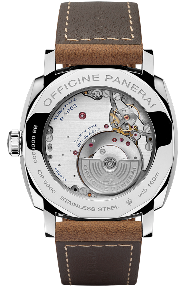 Классика на все времена - мужские часы, сдержанные и элегантные по дизайну, разработаны компанией Officine Panerai и адресованы истинным ценителям часового искусства. Модель является образцом представительности, элегантности и неповторимого изысканного стиля. Эти часы не только выполняют лишь функцию определения текущего времени, но оснащены индикатором второго часового пояса. Для любителей функциональных аксессуаров это настоящий подарок. Изготовленный из нержавеющей стали корпус часов, имеет размер 45 мм. Механизм с автоматическим подзаводом работает от амплитуды движения руки. Часы предназначены для того, чтобы в них плавали и имеют водонепроницаемость 100 м. Циферблат закрыт прозрачным антибликовым стеклом из сапфирового хрусталя высокой прочности, благодаря чему обеспечивается максимальная защита от сколов и механических повреждений. Из сапфирового хрусталя сделана и задняя крышка, которая дает возможность воочию увидеть детали механизма и вносит нотку неординарности. из натуральной кожи с простой стальной застежкой превосходно дополняет изысканный образ модели. Второй часовой пояс. Калибр P.4002. Запас хода до 72 часов. Индикатор запаса хода. Циферблат черный. Задняя крышка прозрачная.