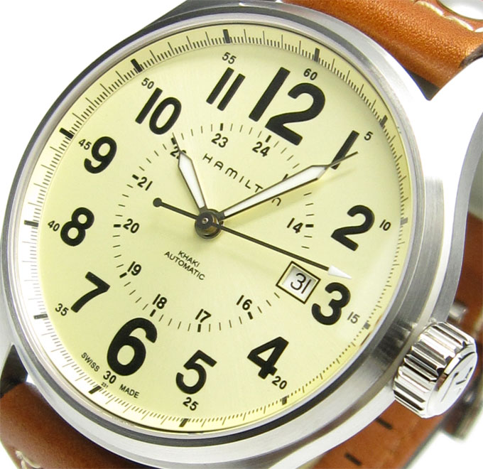 Представляю Вашему вниманию часы Hamilton, офицерские часы серии Khaki, с кремовым циферблатом, на кожаном ремне в стиле милитари (изготовлен из высококачественной кожи вручную в Германии). Hamilton - один из наиболее удачных и качественных брендов на рынке часов, выпускающихся в Швейцарии по заказу американских компаний.