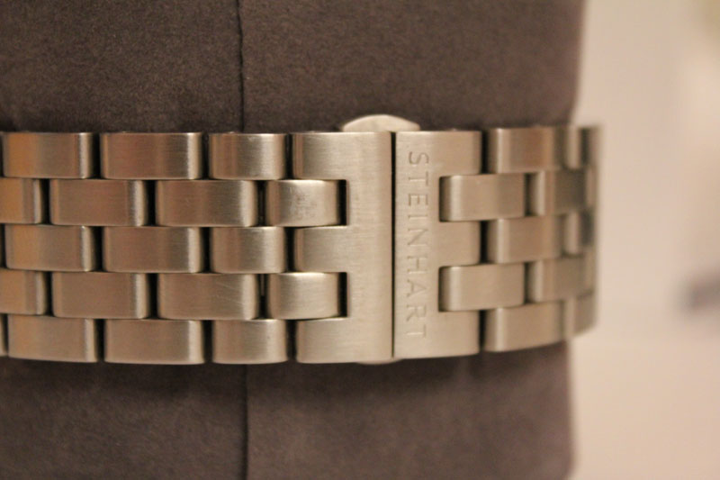 Плюс браслет-Steinhart(хирургическая сталь)короче чем ремень.