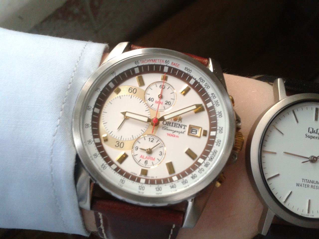 Можно и на ногу натянуть... Кука - универсального костюмного формфактора. Ориент надо носить как кэж, или подбирать под него форму манжеты. Скорее всего хорошо будет выглядеть с французской (британской), т.е. с двойной под запонку. Они широкие и крупный размер часов будут скрадывать.