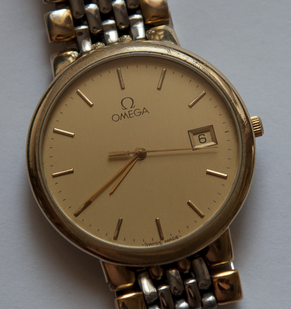 Старая модель, браслет - позолота, корпус имеет стальную основу, рант теоретически может быть золотым, надо смотреть. Если он золотой, то должен быть съемным, и это видно.