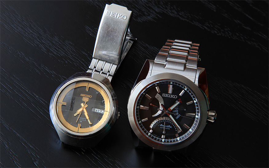 В 1977 году мой батя купил в городе Тегеране первые настоящие часы, что я увидел и которые отпечатались в сознании меня-киндера и , в последующем сформировали стойкую болезнь и манию. В те времена, наш советский народ не был избалован часовыми изысками, за исключением отдельных индивидов, поэтому Сейка 5 , с граненым , ак стакан, минеральным стеклом, была просто бомба. Кстати, и сейчас, если их отполировать, да каким-то образом привести в первоначальный вид стекло, они будут достойно выглядеть (фото этих часов см. ниже).Что интересно, с того самого 1977 года часы не знали вскрытия, репассажа и прочих манипуляций , касаемых обслуживания. Где-то в классе 5-6, мой родитель презентовал мне сию Сейку, разменяв ее на новомодную напичканную Касио с записными книжками,калькулятором, кофемашиной и прочим. Как сейчас помню, в школе данные часы не произвели должного резонанса, ибо все были увлечены стремными пластиковыми часами с надписями «Мальбро», «Кент», «Дюрекс» (шучу, бренд просто нравится), Монтана с тысячами мелодий ритмов и танцев народов мира, наконец, совковыми Электрониками, которые , кстати, мне импонировали много больше своей кондовостью и законченностью угловатых форм. Меня же более всего интересовало, что сейка механическая (чертовски хотелось их вскрыть и обозреть нутро, но боялся, поэтому отыгрывался на бабушкиных будильниках и настенных часах), да и ни у кого и ничего подобного я не видел многие годы. Вплоть, до курса второго, я жил с этими японцами, коих сменил и положил в далекий ящик, на Лонжин. Про Лонжин , это отдельная забавная история образца 92 года. Вторую Сейку (монстр, см.фото ниже) я заполучил лишь в начале этого года, ее я называю «индийской». Надо сказать, на ее долю выпала нелегкая женская судьба — она прошла достаточно изнурительный энный по счету трип по Индии, перенесла со мной жару, океанические катаклизмы, падение с мотобайка и, вообще, разного рода издевательства...даже была укушена местной мартышкой (абсолютно серьезно). Что интересно, часы прекрасно сохранились, идут почти секунда-в-секуду и даже не были обменены мной, по инициативе моих шибанутых соседей англичан на то ли Орис, то ли Переле. Именно, эти Сейки были первым кокосовым орехом недоверия , упавшим на зрелую землю моего верования в дорогие швейцарские марки :-). Уверяю Вас, мои любимые Панераи ходят куда менее точно (да и вряд ли ПАМы выдержали бы этот трип), чем эти самые Монстры за 5 тыш деревянных....но ПАМ, для меня священный бренд, почти как корова в Индии, и не будем больше заострять на этом внимание. Однако, ближе к телу. Позавчера, беседуя с уважаемым форумчанином на предмет покупки у него Сейки Пепси для подарка, я услышал, что де продается еще и легендарная Ананта ретроград по очень вкусной цене. Надо сказать, что впервые я столкнулся с Анантой год назад на просторах интернета — увидел замечательный ролик на ютубе . Как сейчас помню, меня, в особенности, поразил корпус часов, абсолютно фантастический циферблат, метки и стрелки, создавалось впечатление, что их делали не мастера Сейки, а , как минимум, сам мифический Хатори Ханзо, да и как все знают, в идею создании Ананты, вошли , именно, японские мотивы создания катан. Вообщем, я поставил себе зарубку на одной из семядолей мозга, что тема Сейки осталась для меня не раскрыта и надо обязательно, если уж не купить, то н
