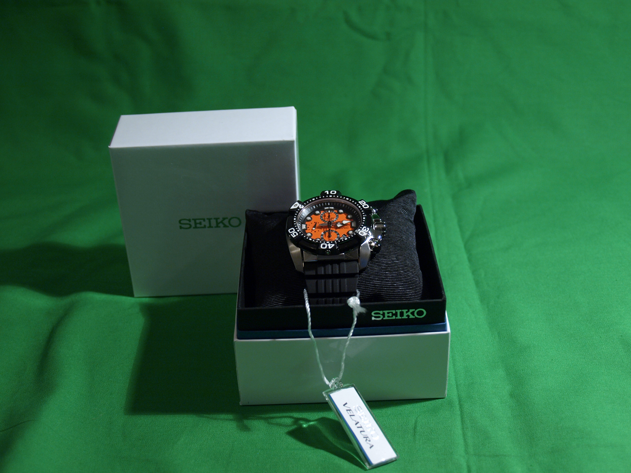 Представляю Вашему вниманию новый мужской дайвер производства Seiko: Velatura SNDA63P1; красивые, крупные часы, с настоящим дайверским хронографом, рассчитанные на погружение с аквалангом (200 м), с вставками с покрытием нитридом титана. Достойный продолжатель традиций SBCM023, и стоит каждой копейки своей цены. У заграничных почитателей данная модель именуется VOV - Very Orange Velatura. =)